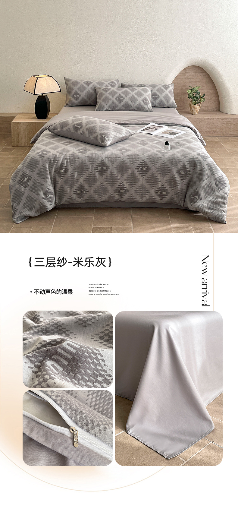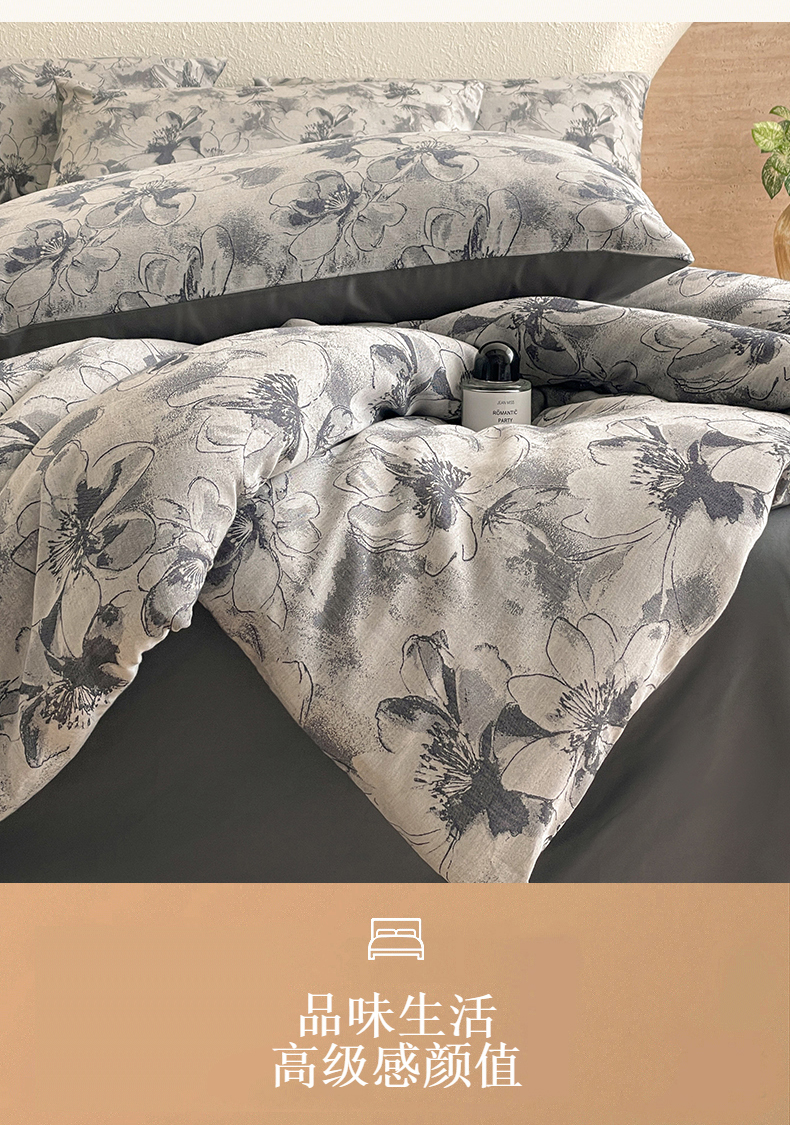 当前位置: 91家纺网 > 商品网购 > 床品套件 > 四件套 > 双层纱四件套 > 琪格格纺织 2025新款全棉纯棉双层纱提花四件套 双层纱-织梦深蓝