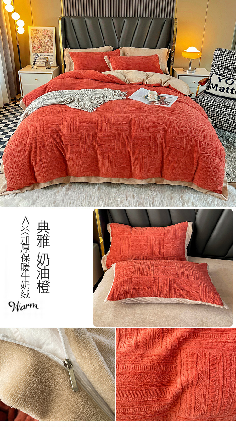 商品名称:梵克保罗 2025秋冬新款全消光拼角雕花绒牛奶绒四件套 组合图