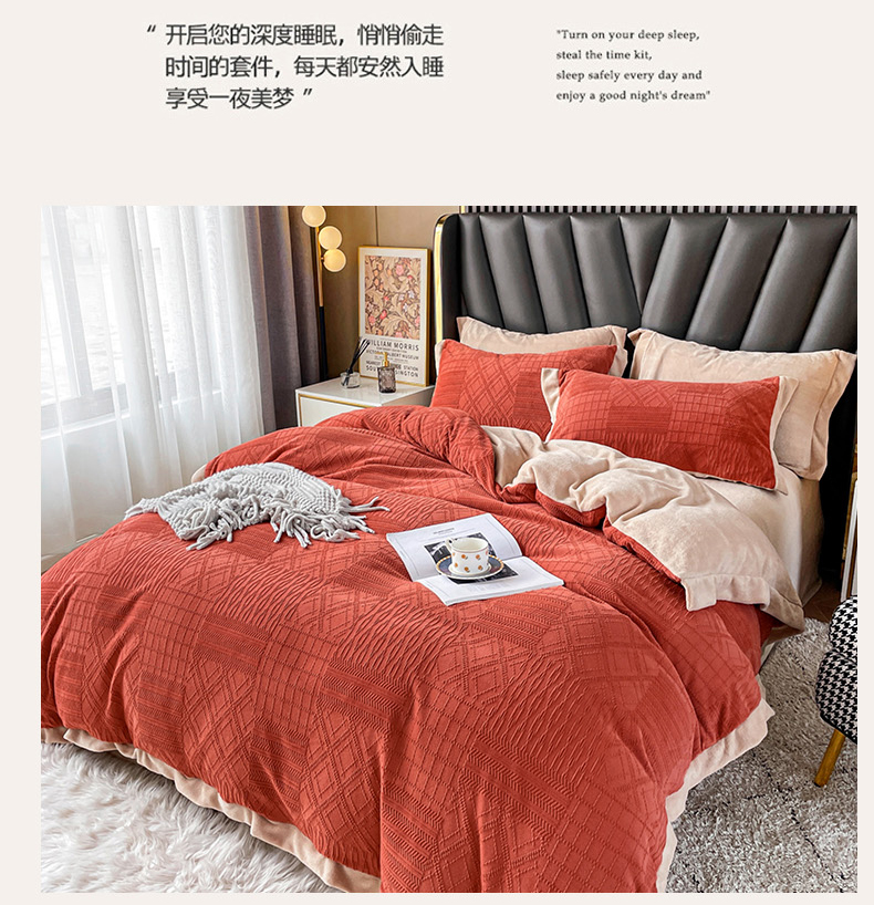 梵克保罗 2025秋冬新款全消光拼角雕花绒牛奶绒四件套 组合图