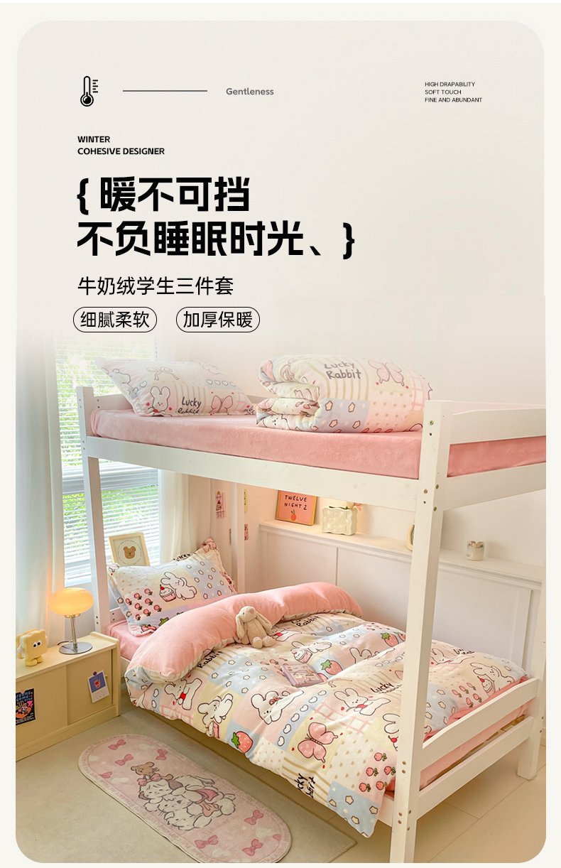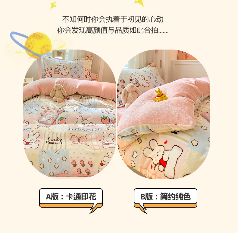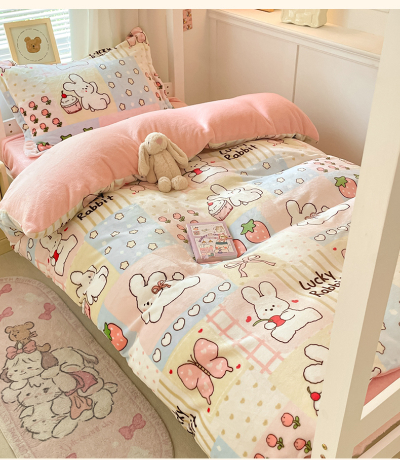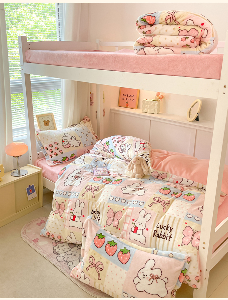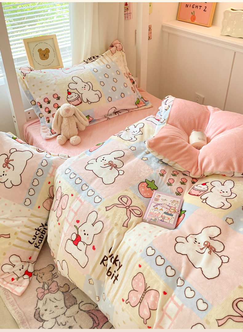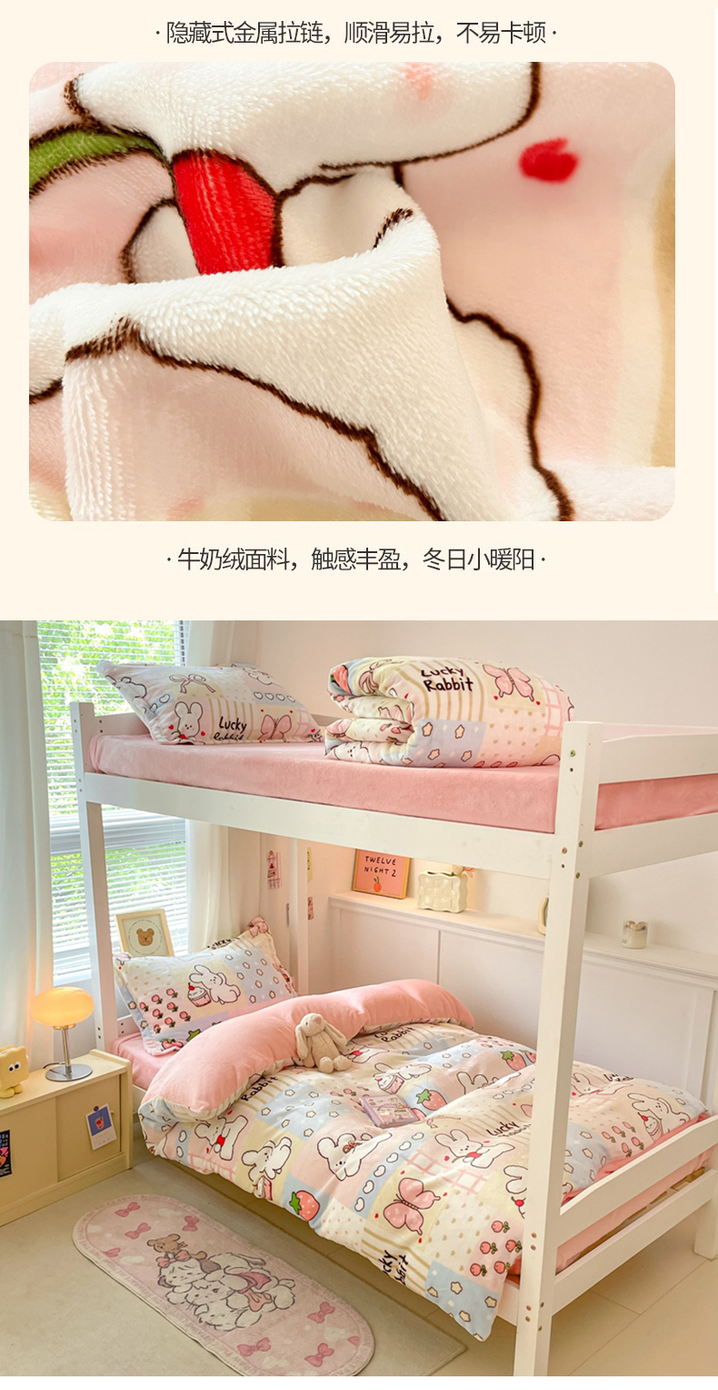 当前位置: 91家纺网 > 商品网购 > 床品套件 > 三件套 > 寻米 2025新款高克重加厚保暖牛奶绒学生宿舍单床笠单件床笠系列二 幸运兔
