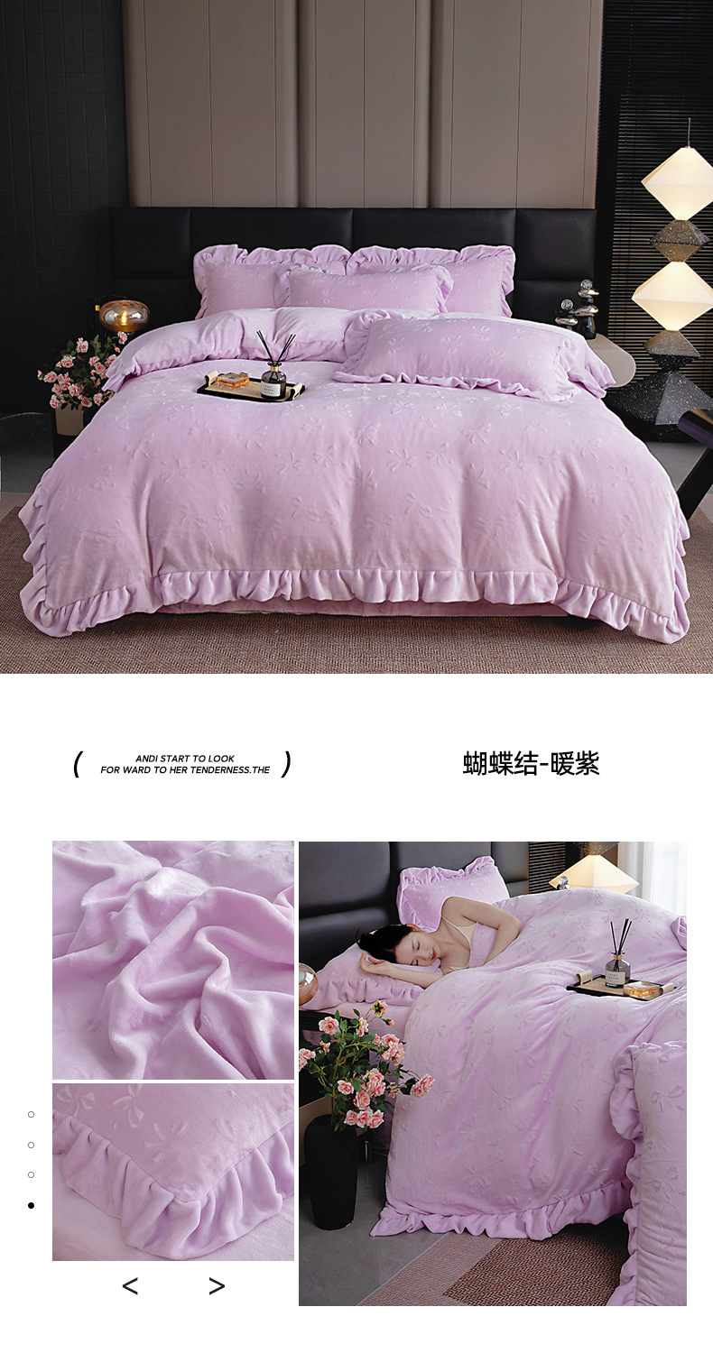 商品名称:找底底家纺 2025新款加厚韩版全消光烂花牛奶绒四件套(加厚8斤重 日销20单客户优惠8元) 梦屿-紫兰