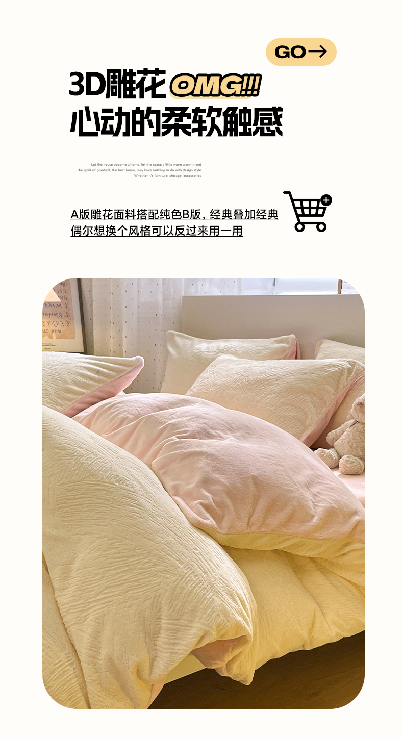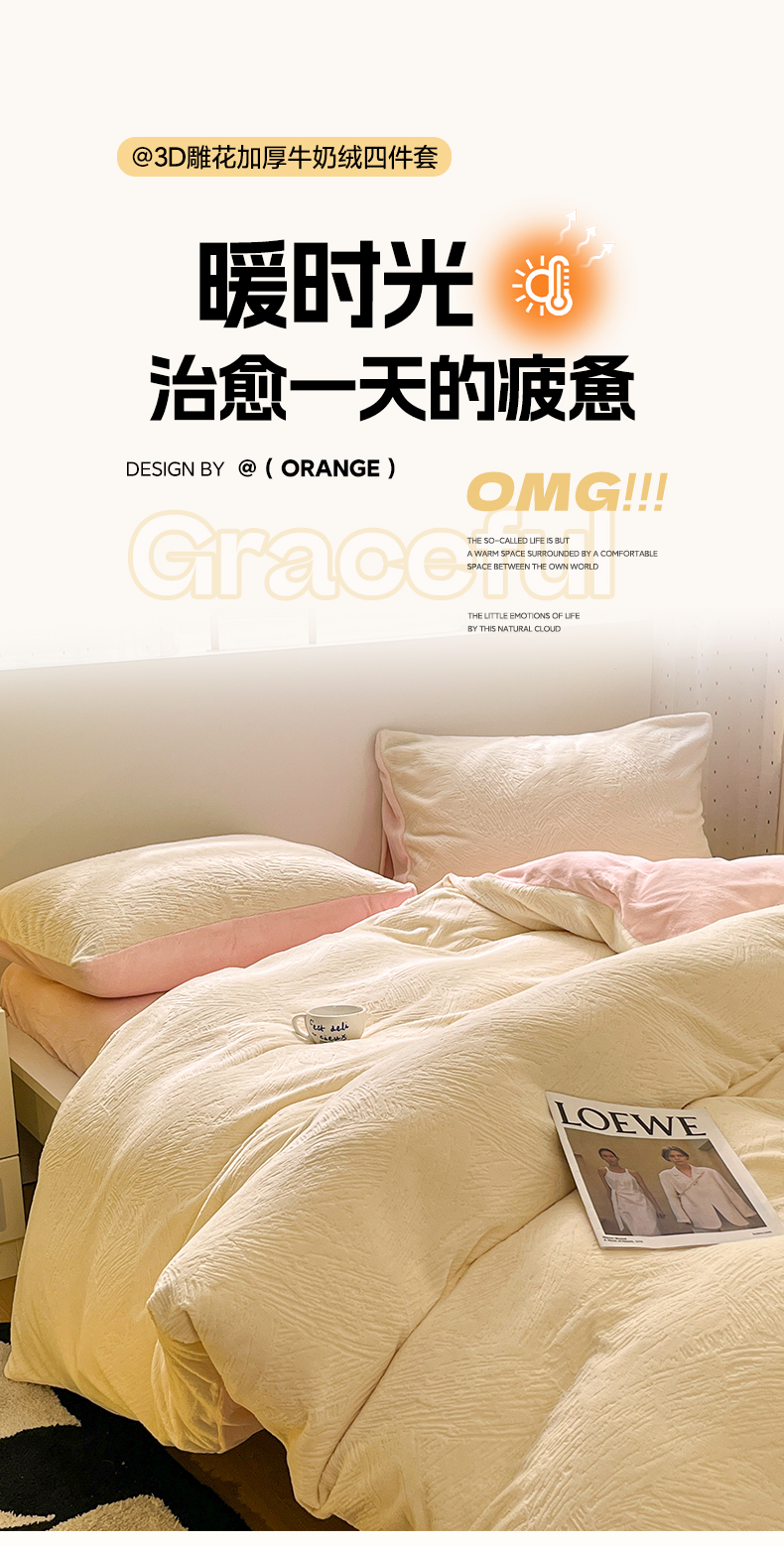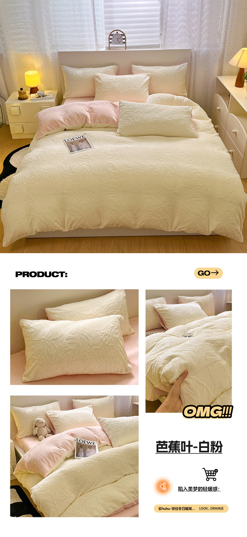 (总)如一 2025年3D立体雕花牛奶绒四件套,芭蕉叶-白咖,花漾-粉,编织纹-天蓝,繁花-粉,编织纹-白咖,缤纷-粉,编织纹-白橘,繁花-天蓝,花漾-黄,华夫格白,华夫格黄,肌理纹-杏,千鸟格粉,千鸟格灰,编织纹-粉,编织纹-灰,芭蕉叶蓝,编织纹-蓝灰