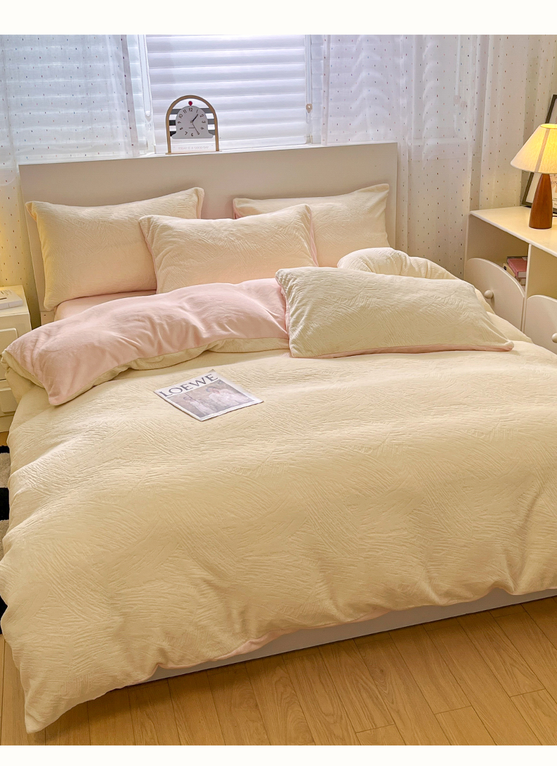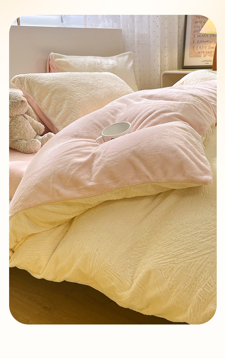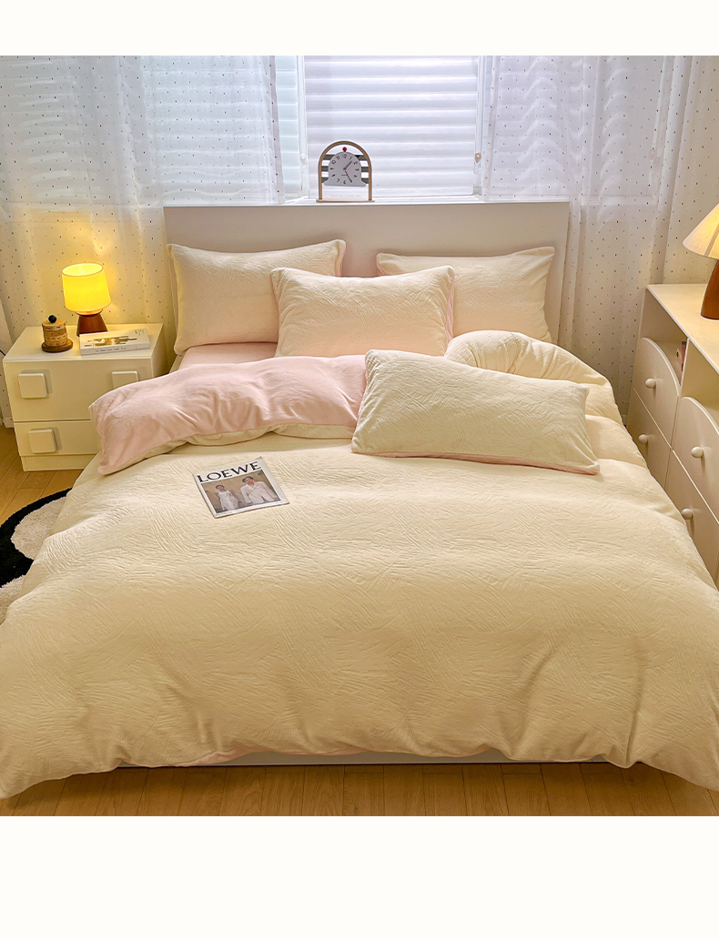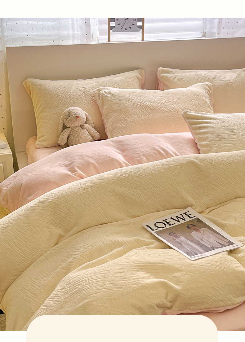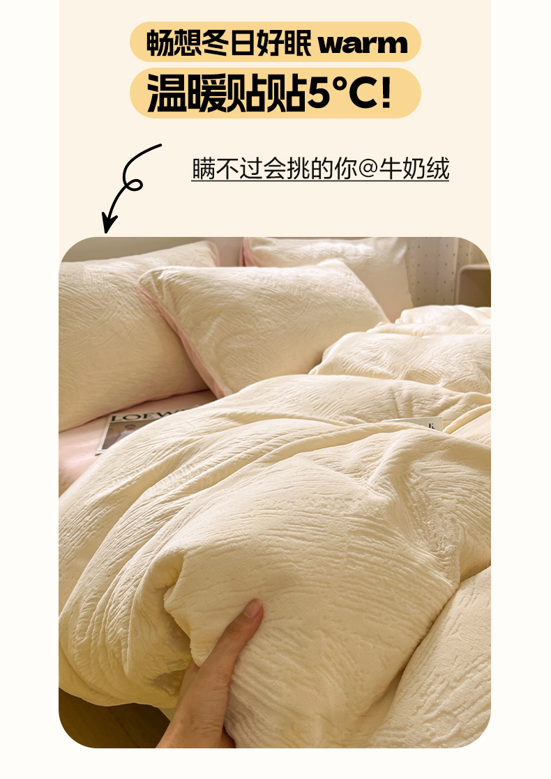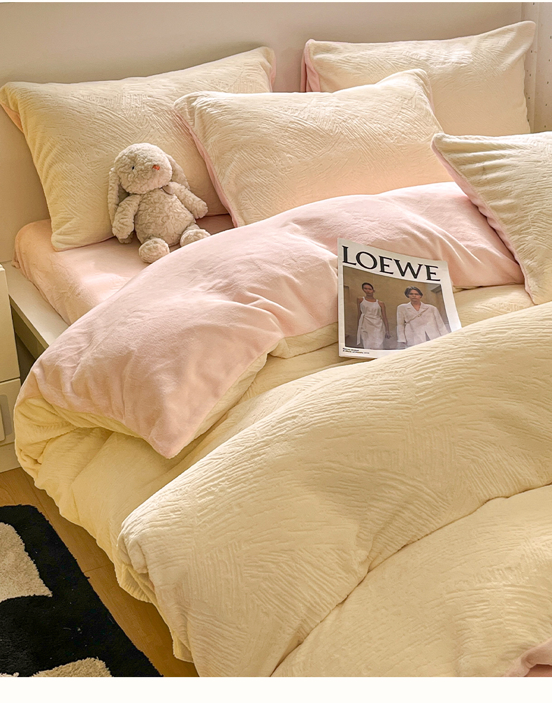 如一 2025新款3D雕花牛奶绒四件套第三批 肌理纹-白粉