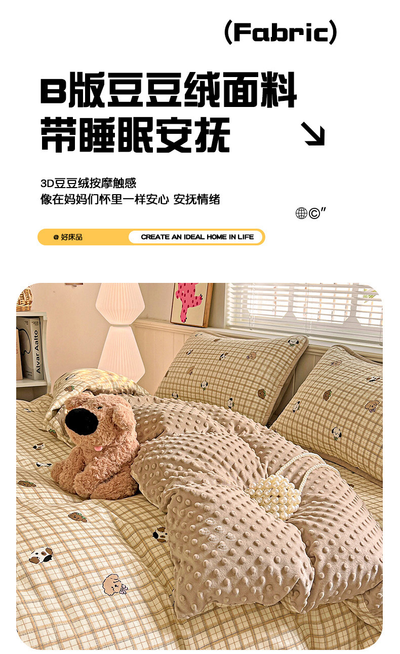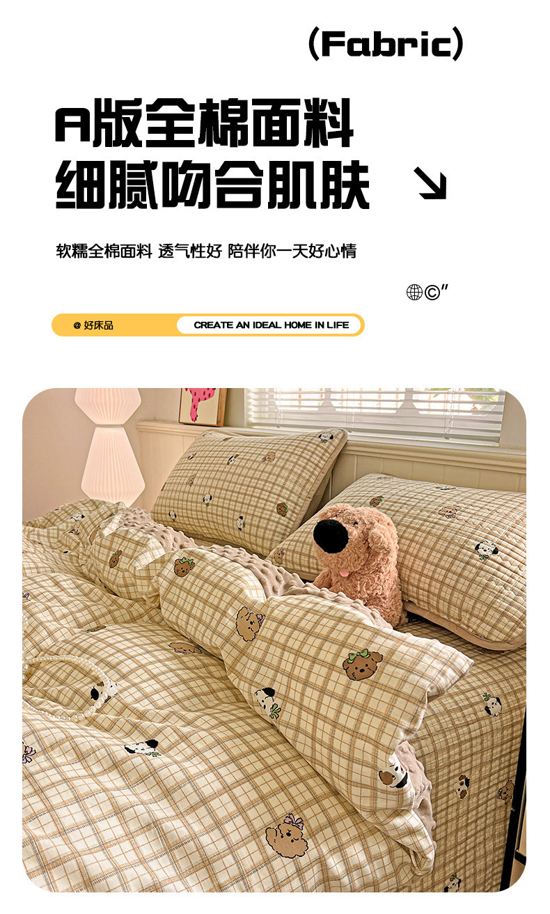 (总)漫时光 2025新款正面纯棉反面宝宝绒印花夹棉砂洗床盖四件套,班尼熊,曲奇小狗,条纹熊,蕾丝小狗,汪汪曲,开心屋,小狗日记,花园兔,小伙伴,花间小兔,小熊猫,风铃小兔,猫咪派对