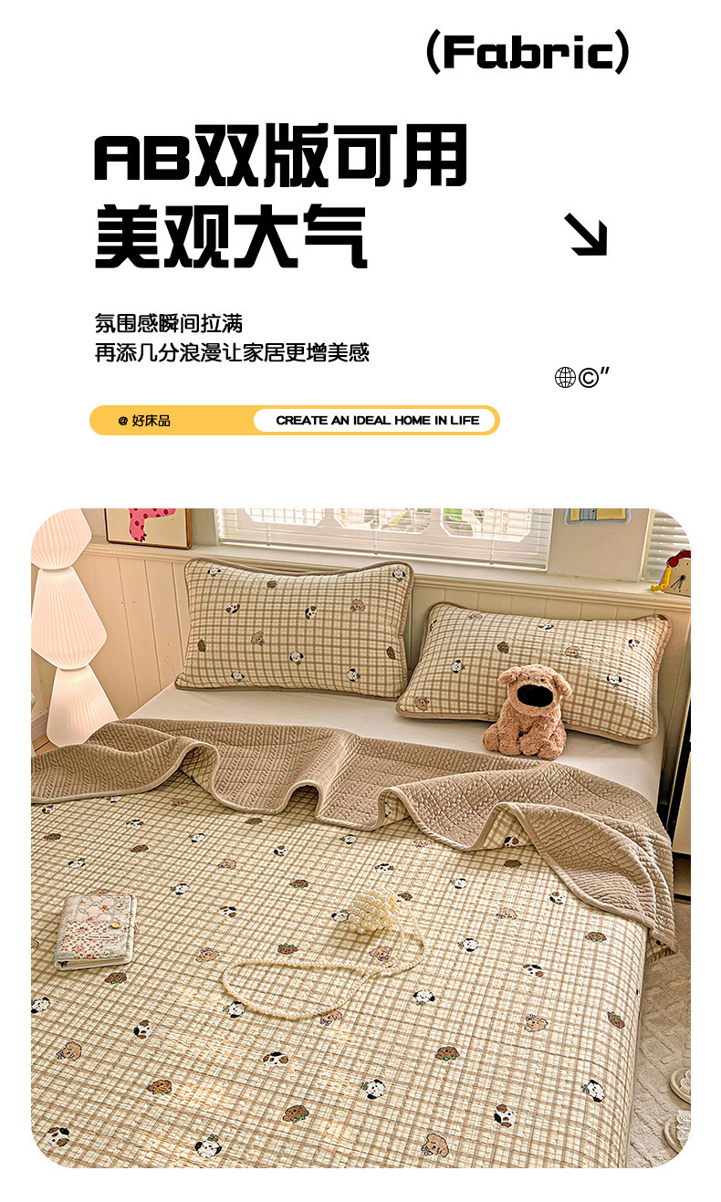 (总)漫时光 2025新款正面纯棉反面宝宝绒印花夹棉砂洗床盖三件套,班尼熊,风铃小兔,花间小兔,花园兔,开心屋,蕾丝小狗,猫咪派对,曲奇小狗,条纹熊,汪汪曲,小狗日记,小伙伴,小熊猫