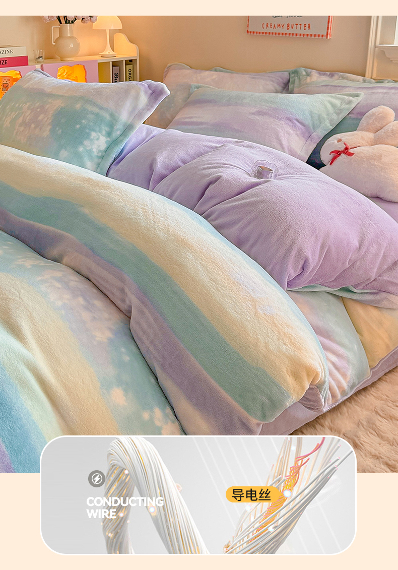 • 91家纺网 家纺一手货源 找家纺 名兮家居 2025秋冬新款加厚高克重牛奶绒单被套 彩色的梦