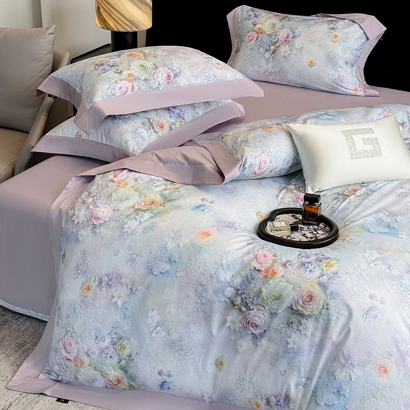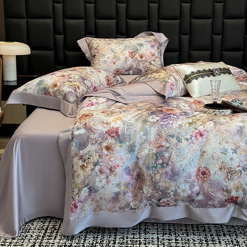 (总)东方名伶 2025新款莱赛尔兰精天丝棉数码印花宽边四件套,漫漫花开-紫,爱丁堡,漫漫花开-绿,莫奈花园紫,莫奈花园玉,波利花园紫,波利花园粉