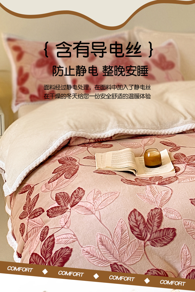 当前位置: 91家纺网 > 商品网购 > 床品套件 > 四件套 > 其它四件套 > 琪格格纺织 2025新款全消光包边立体简约清新雕花绒四件套 雕花包边绒-秋色宜人酒红