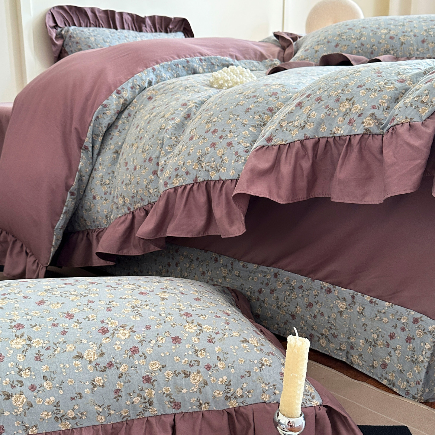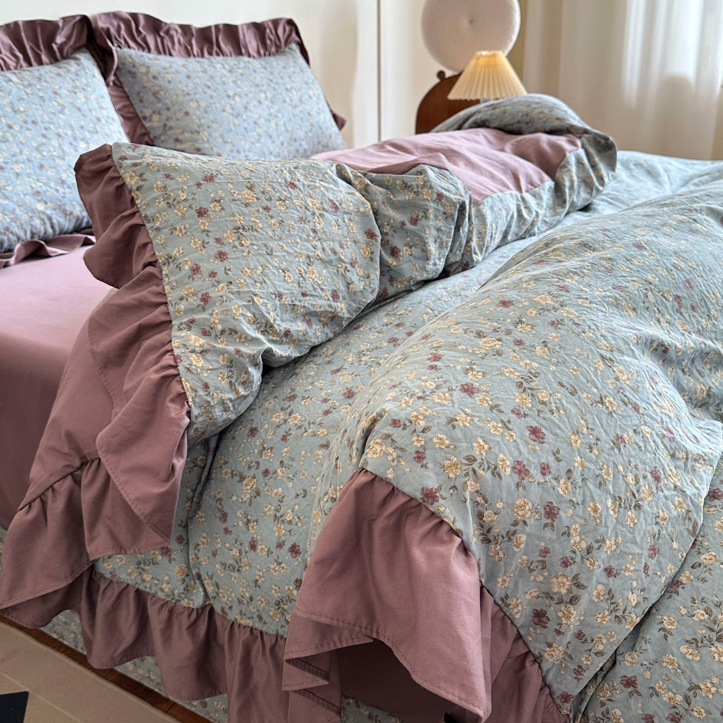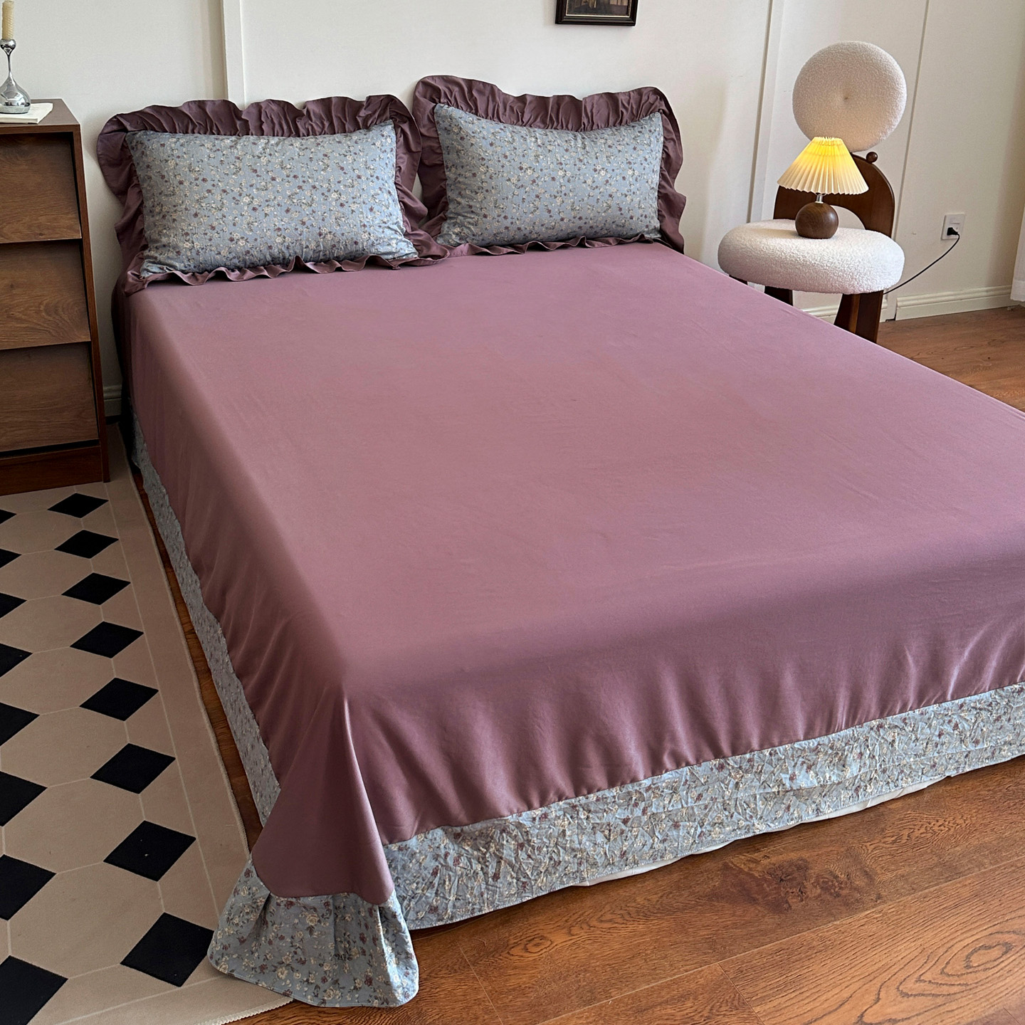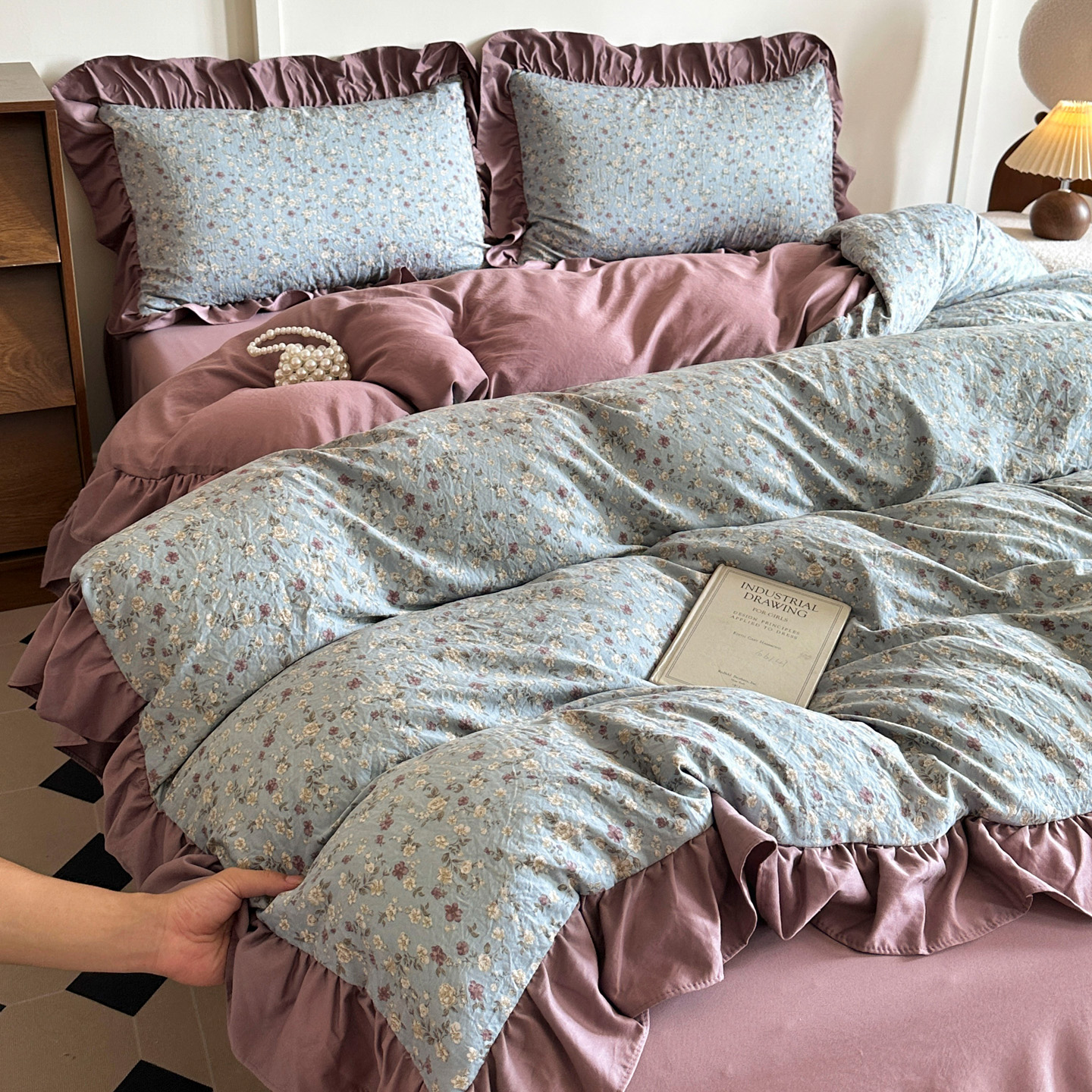 梦莱斯 2025新款高克重云感棉四件套-花边款 紫雾漫花