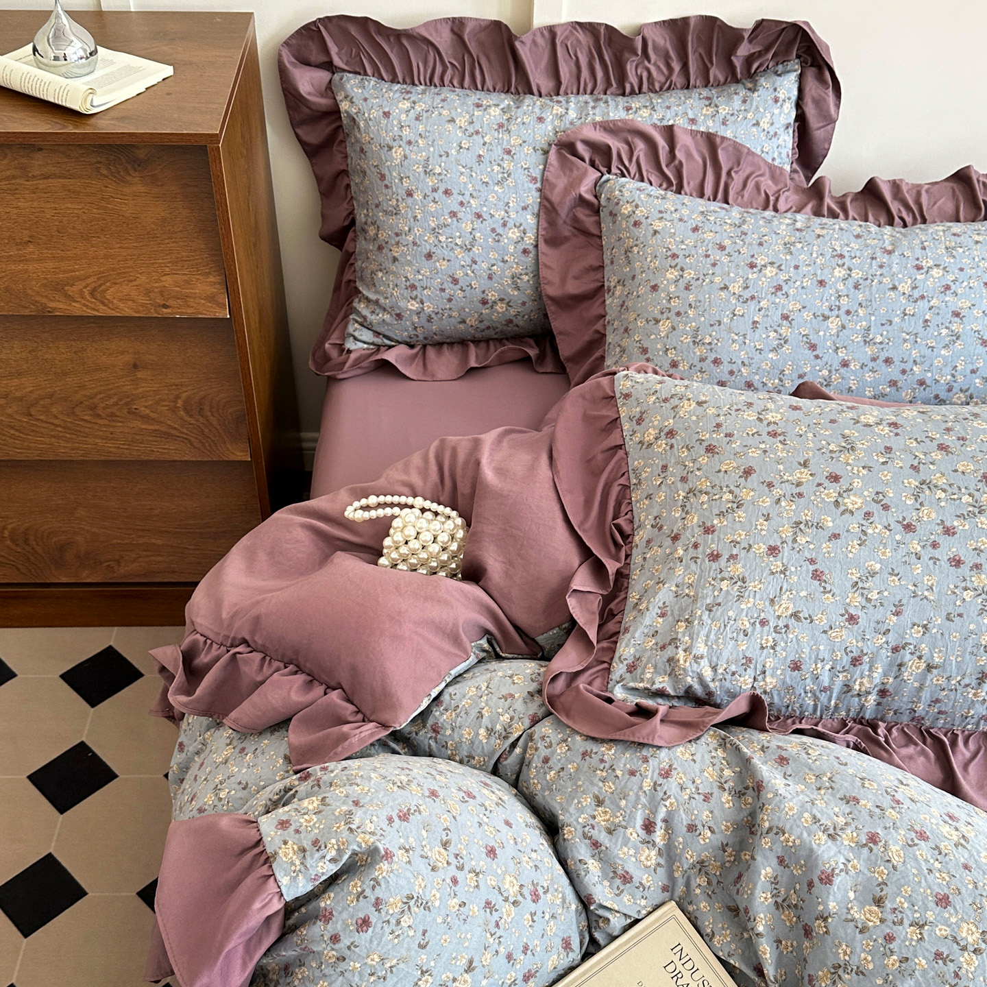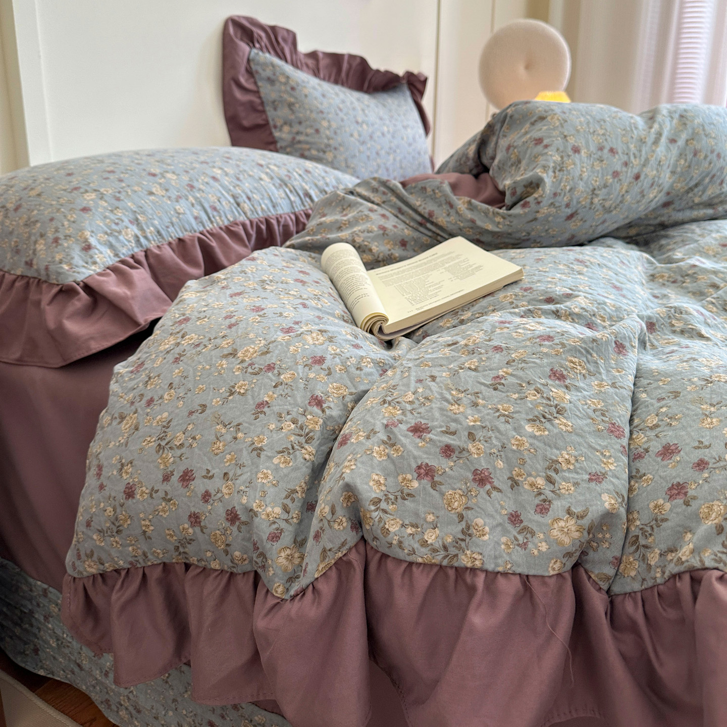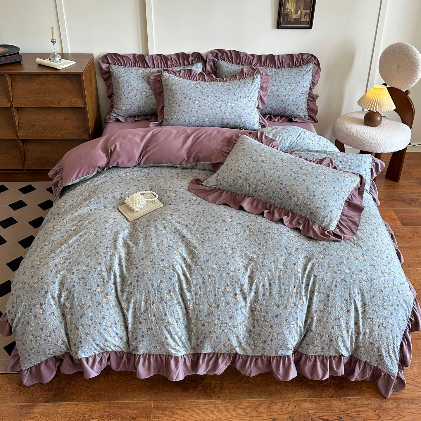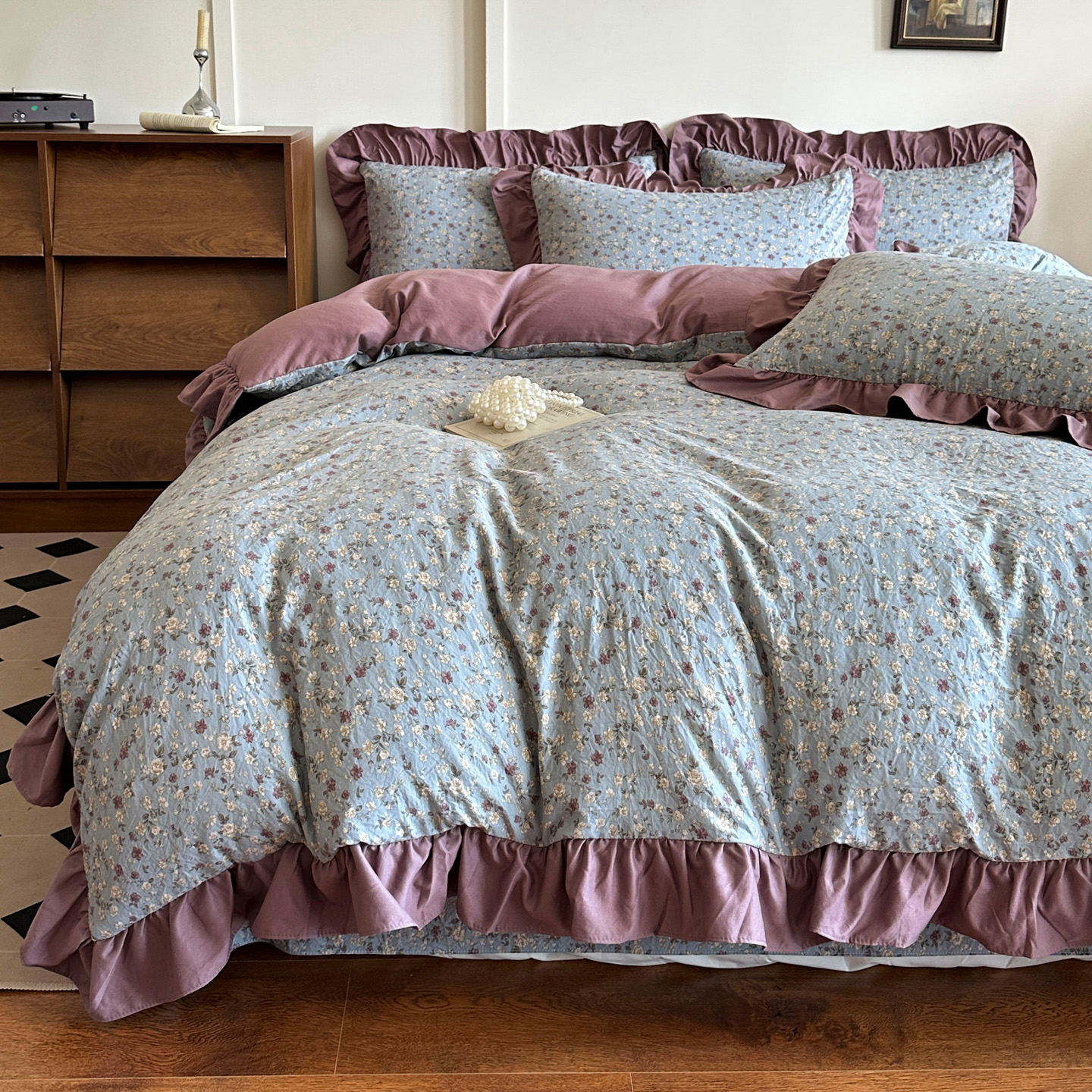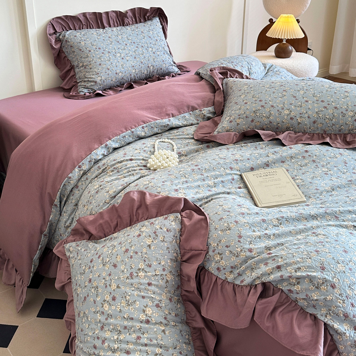 (总)梦莱斯 2025新款云感木棉皱皱双层纱全棉花边四件套,百福蓝,春风里,薄荷微凉,春晓,豆蔻,蝴蝶梦,可颂,兰黛,山野栀子,素颜,太妃糖,心动,遇见,芝士奶酪,紫爱心,紫苏,花园兔,蜡笔画,小黑兔,白茶-绿,初恋,莱茵河畔,桃花诺