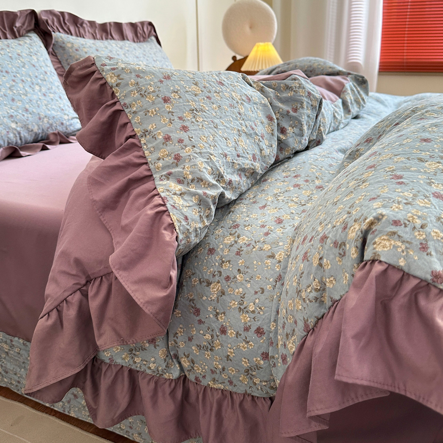(总)梦莱斯 2025新款田园碎花纯棉花边四件套-床盖款,采薇,花精灵,花开半夏,莱茵,恋爱季,绿叶仙踪,糜花似锦,糜花熙悦,秘境花园