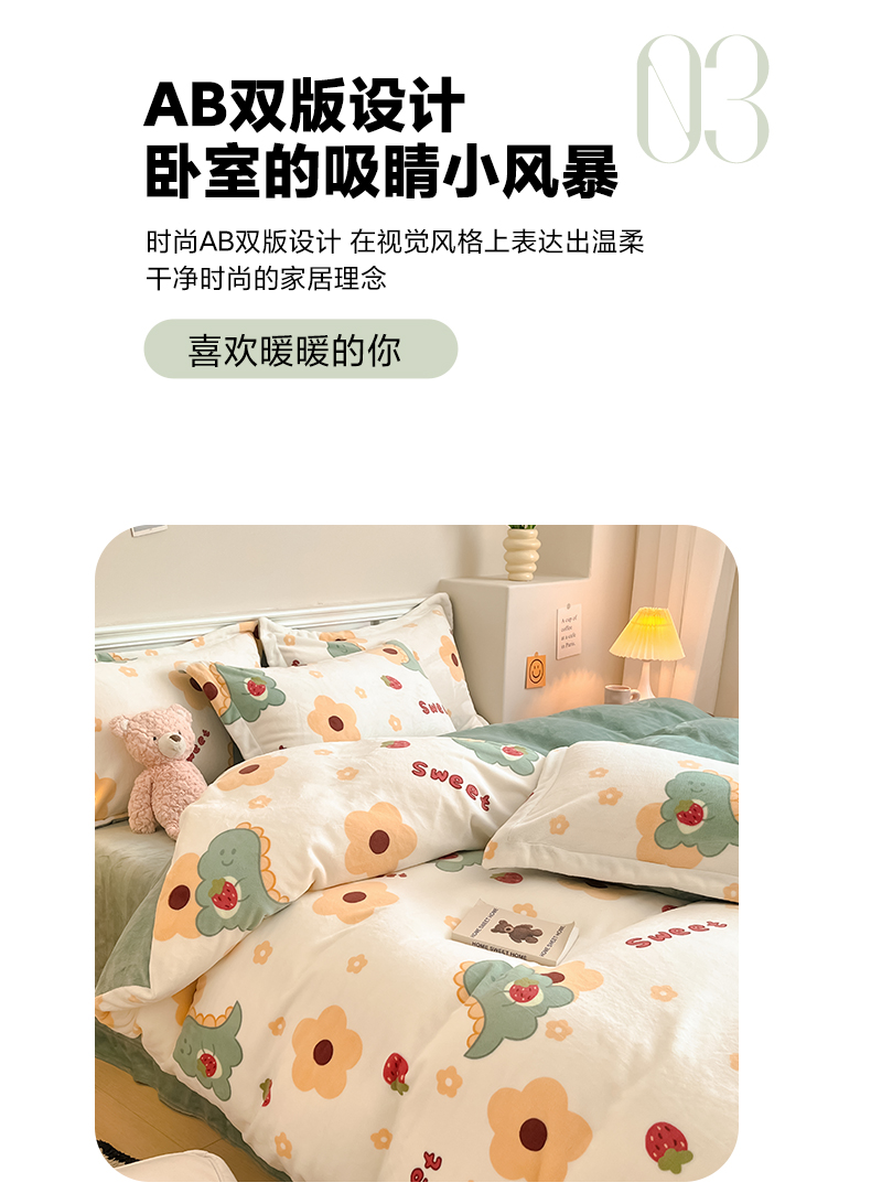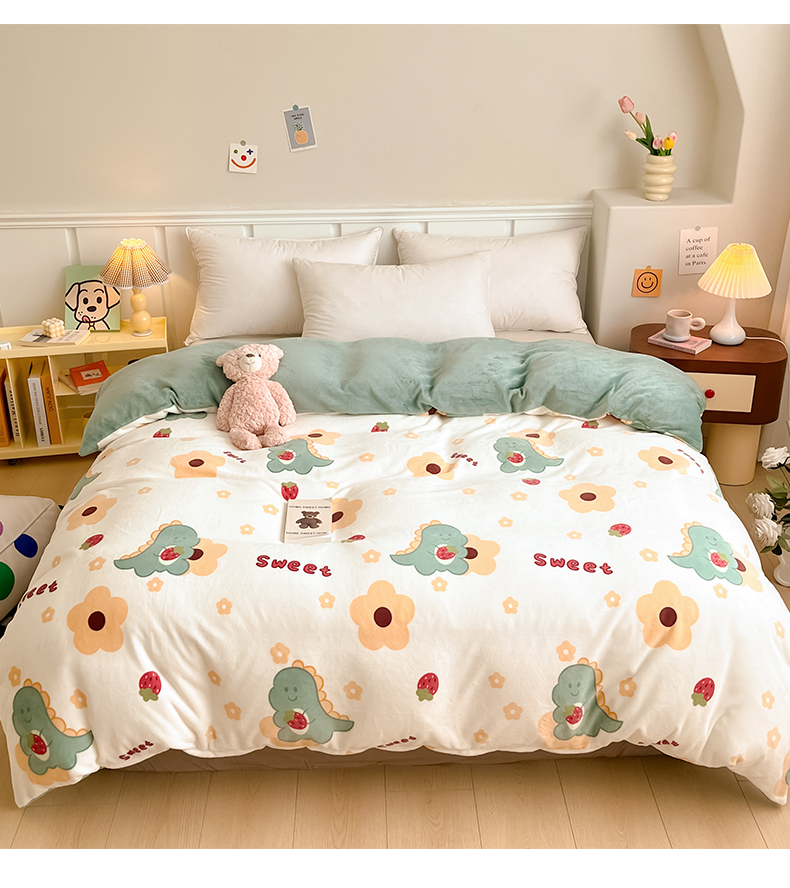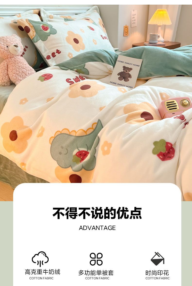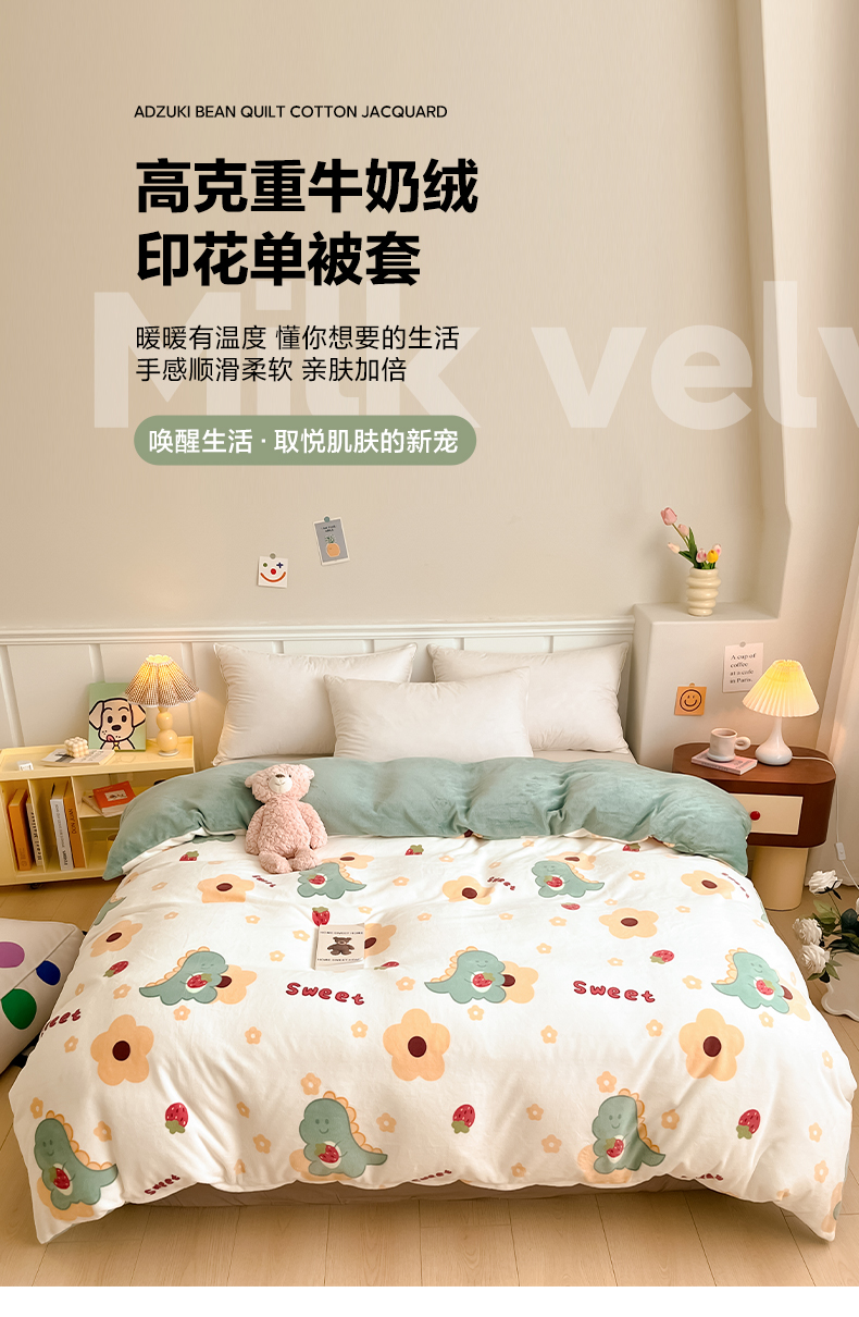 • 91家纺网 家纺一手货源 找家纺 金盛纺 2025新款高克重牛奶绒印花系列单被套(可定制) 萌萌哒