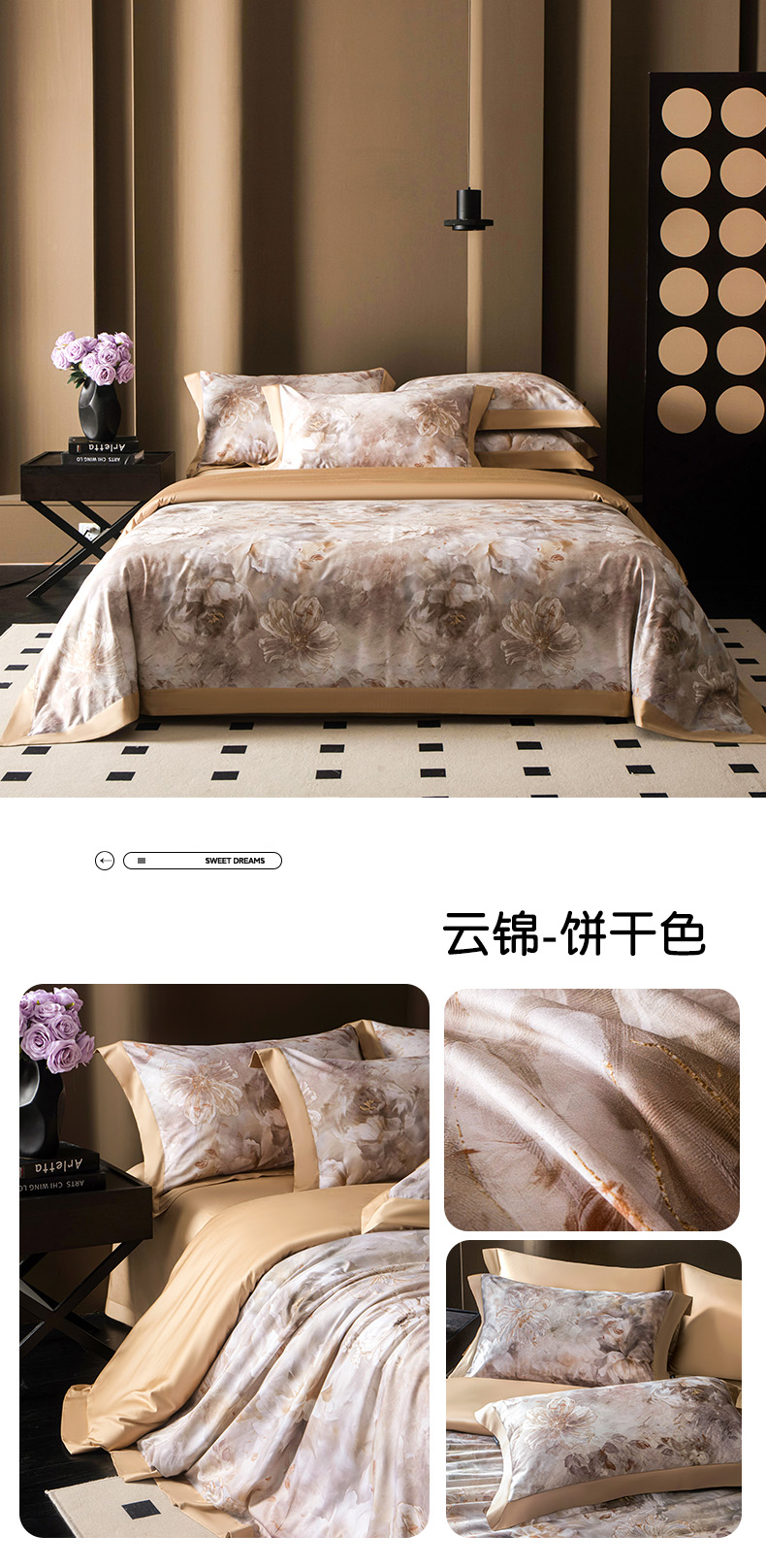 (总)洺兰家居 2026年新疆长绒棉100支秋冬款轻磨毛加厚保暖工艺款四件套床上用品,路易斯-米,千屿-曼卡粉,一见倾心-米,羽纱-卡其,织梦-粉,栀子花开-绿