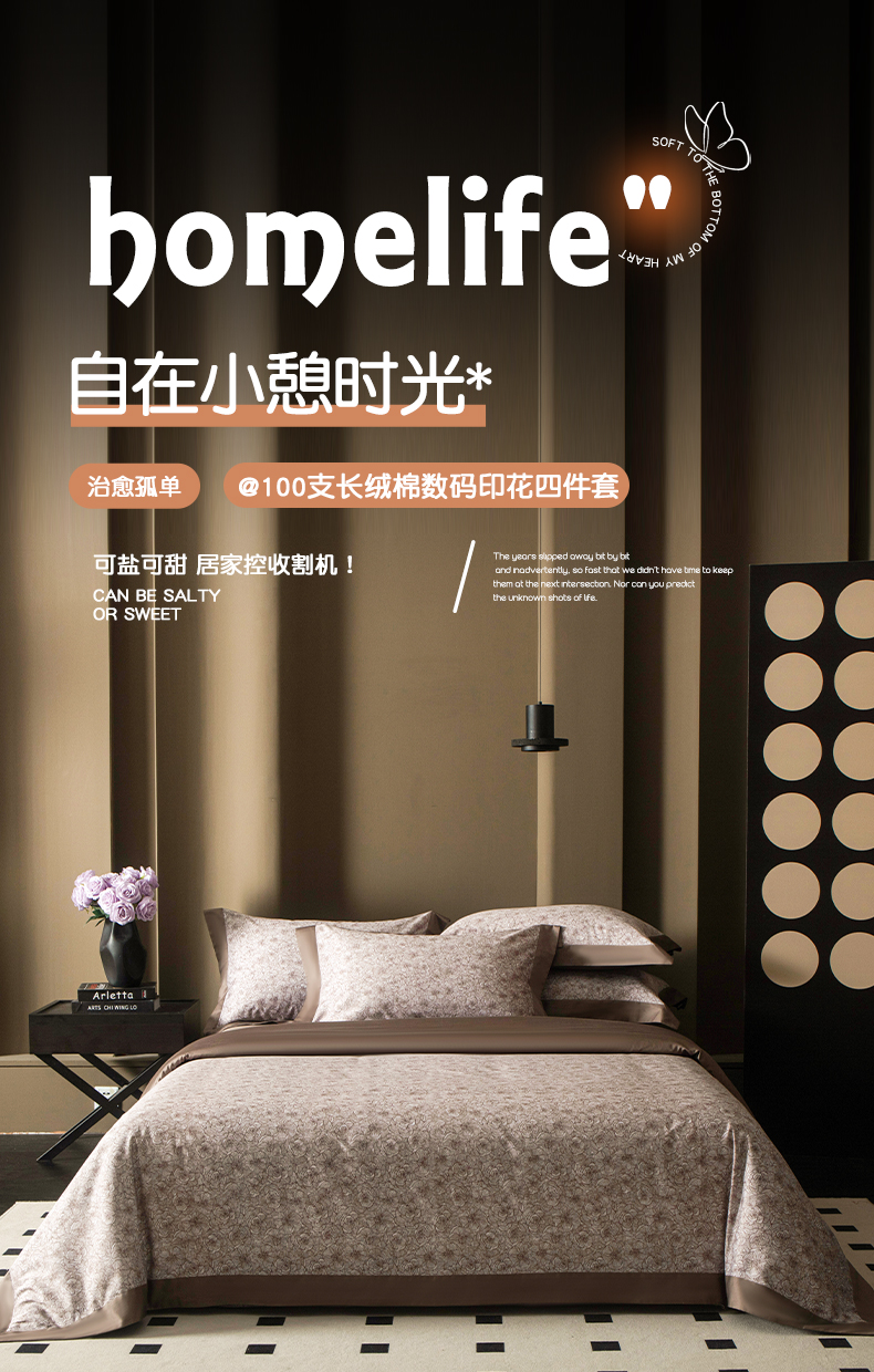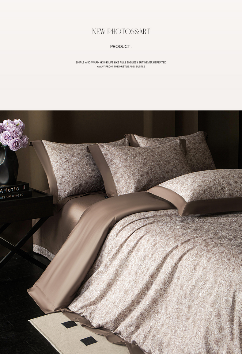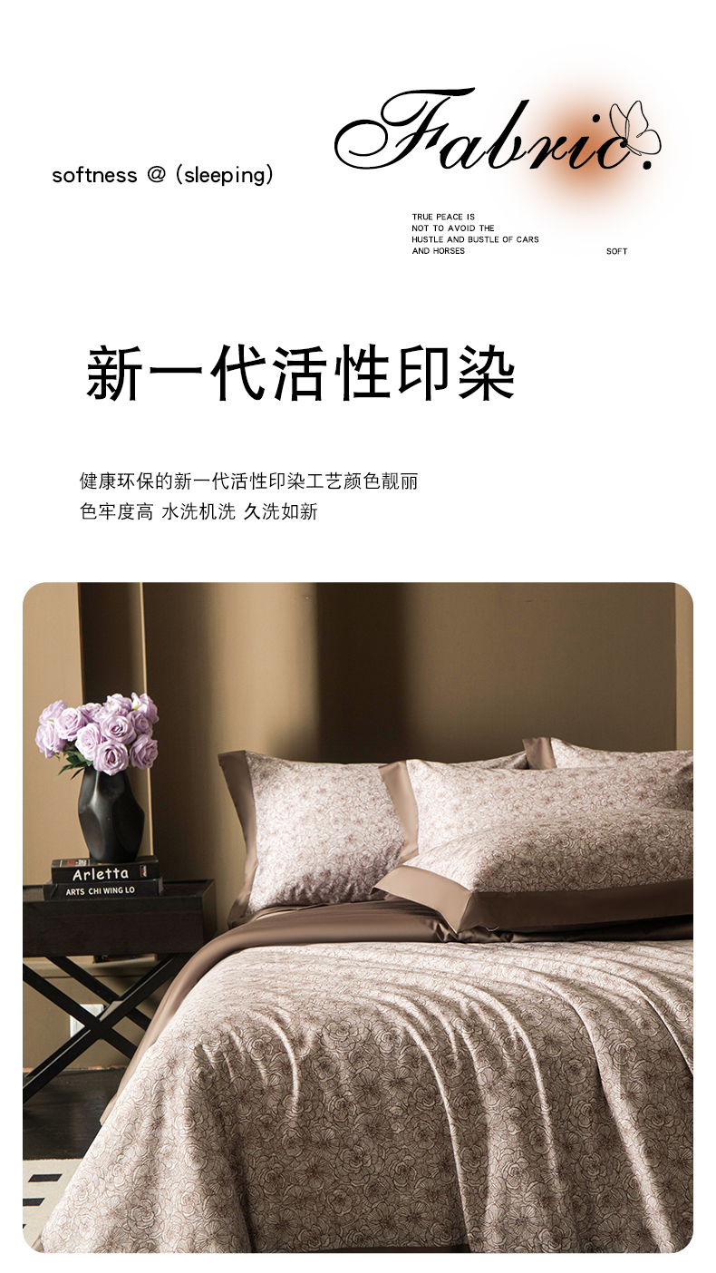 (总)洺兰家居 2026年新疆长绒棉100支天丝棉高端工艺款床单床笠四件套床上用品,淡若清香,陌上花开,羽墨