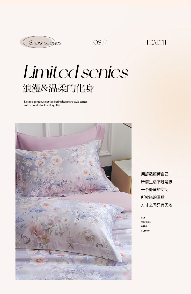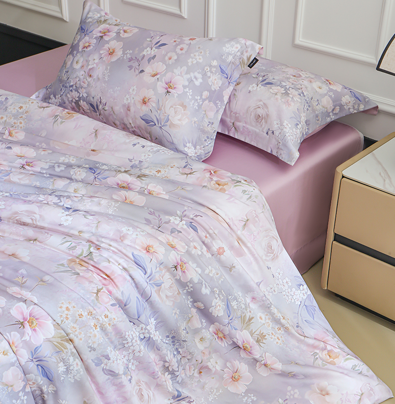 (总)洺兰家居 2026年新疆长绒棉100支天丝棉高端工艺款床单床笠四件套床上用品,淡若清香,陌上花开,羽墨