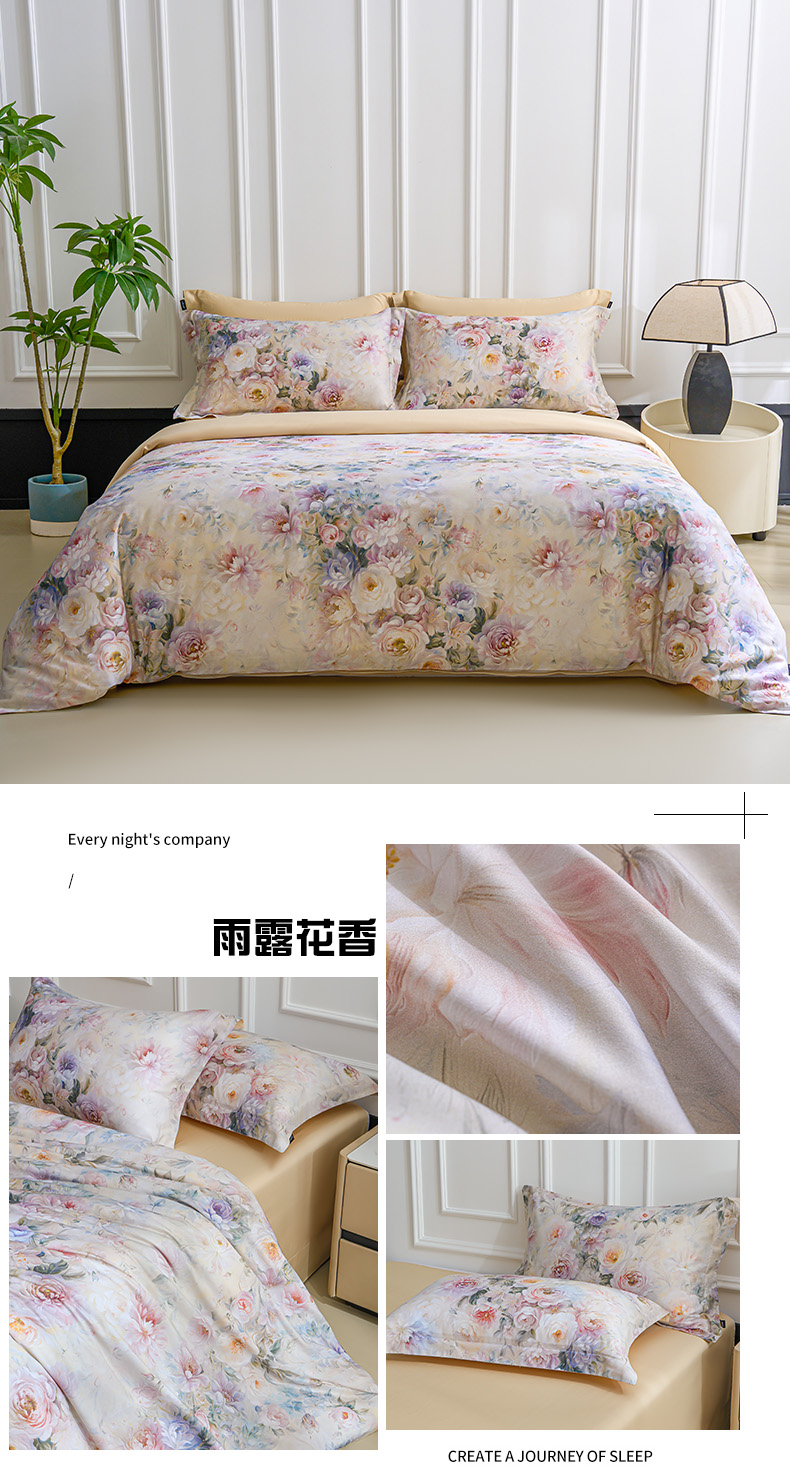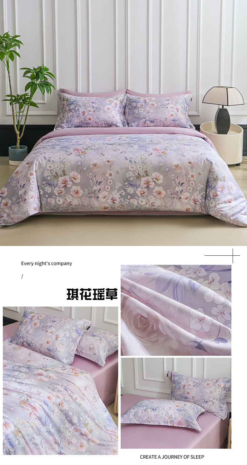 商品名称:洺兰家居 2025新款100支全棉新疆棉数码印花四件套长绒棉贴边床单床笠床上用品套件-专版(控价标准235加大255床笠245) 琪花瑶草