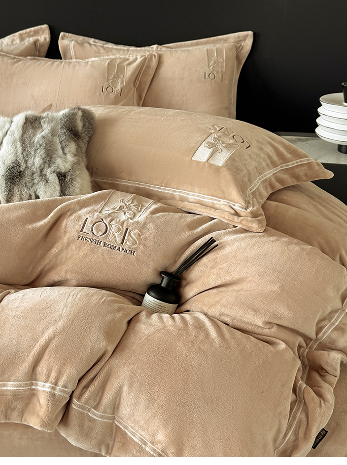 宅家居 2025新款秋冬轻奢小香风刺绣全消光A类高克重牛奶绒四件套-艾菲尔 艾菲尔-卡其