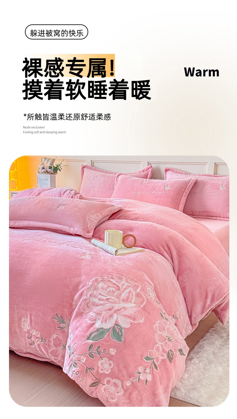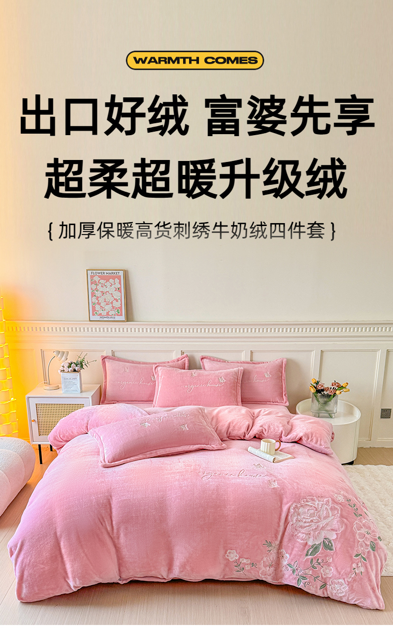 (总)【苏东来】2025高端加厚保暖外贸轻奢款纯色牛奶绒刺绣花四件套床单被套单品简约绒兔毛绒法莱绒婴儿绒套件,时光米黄,时光粉,时光卡其,时光天蓝,时光豆沙