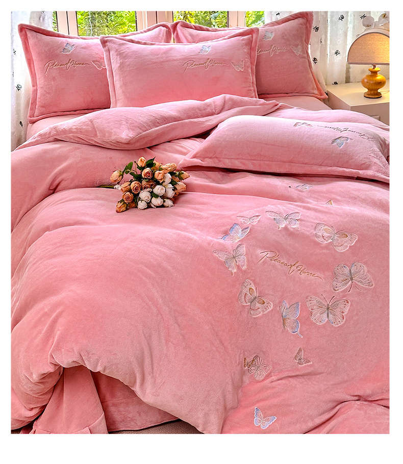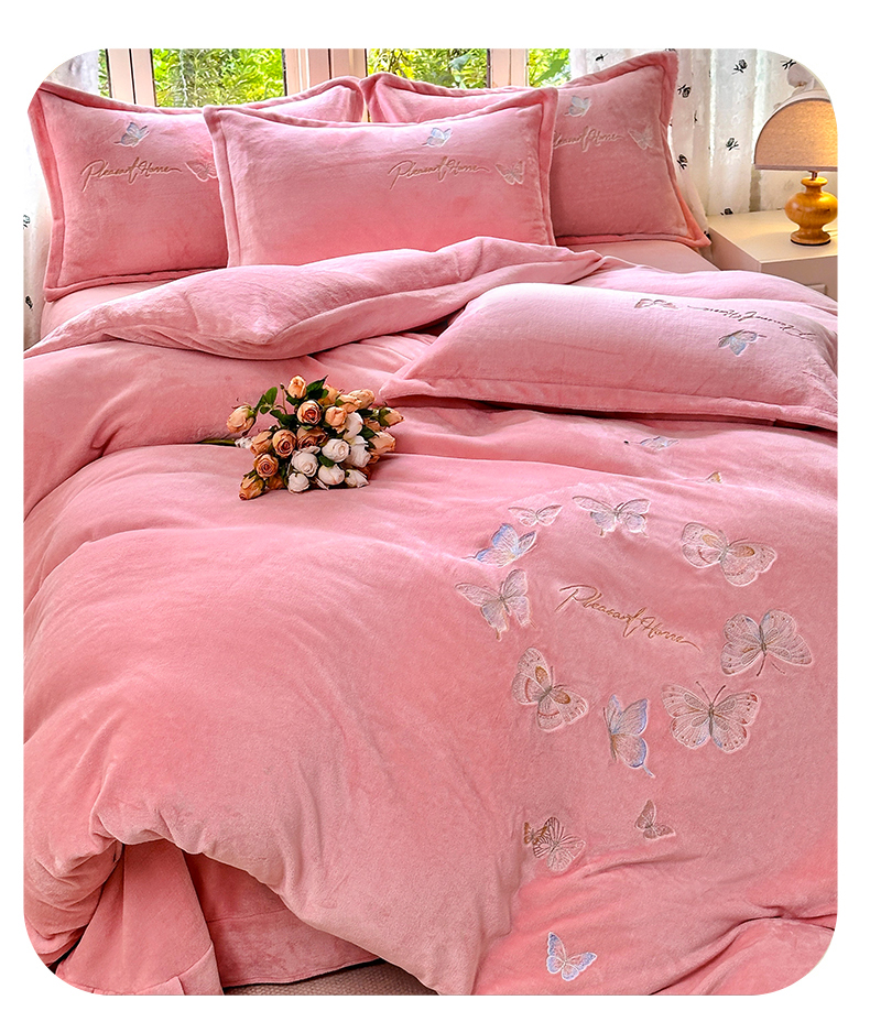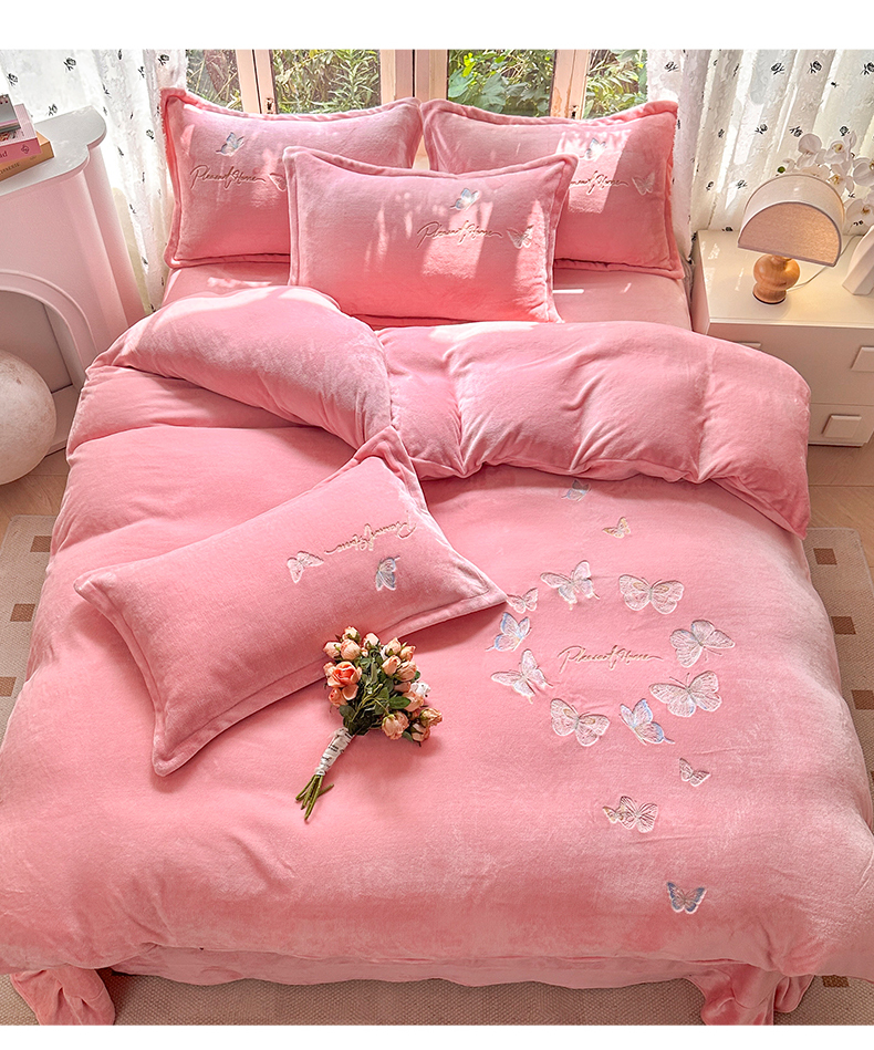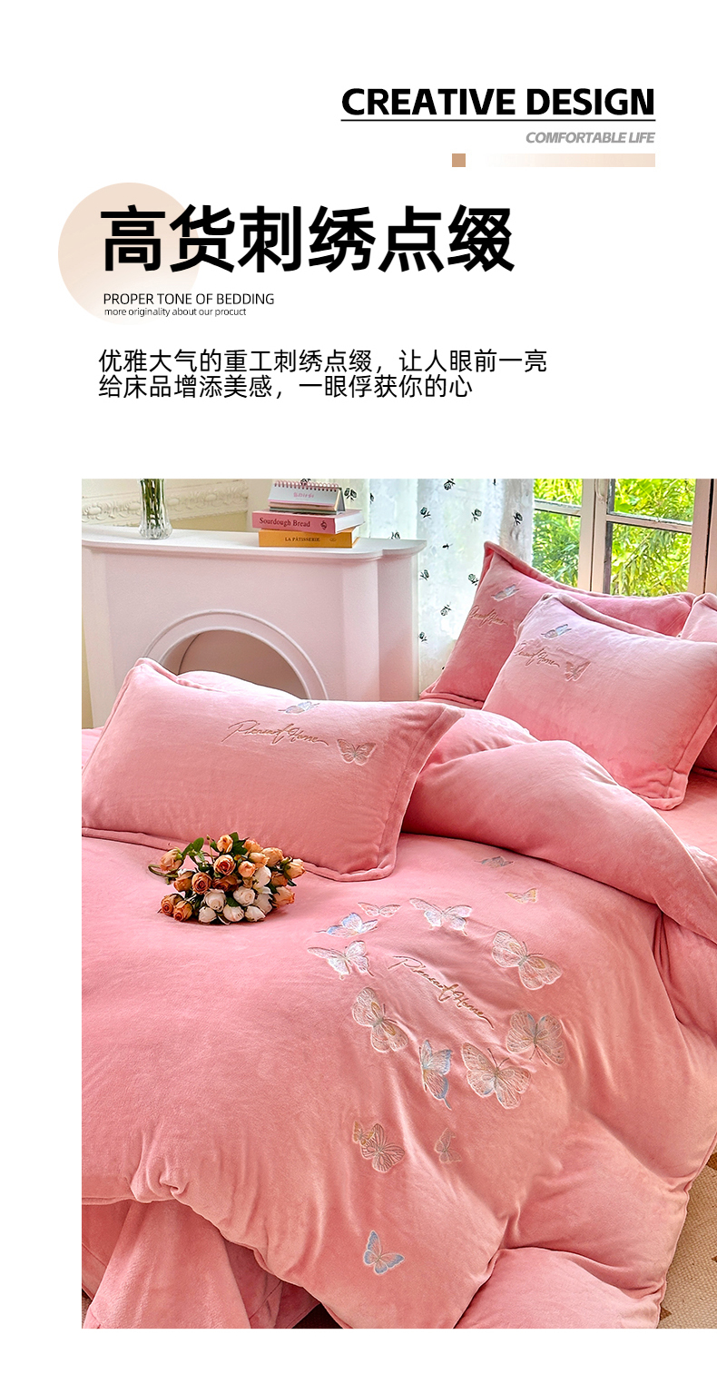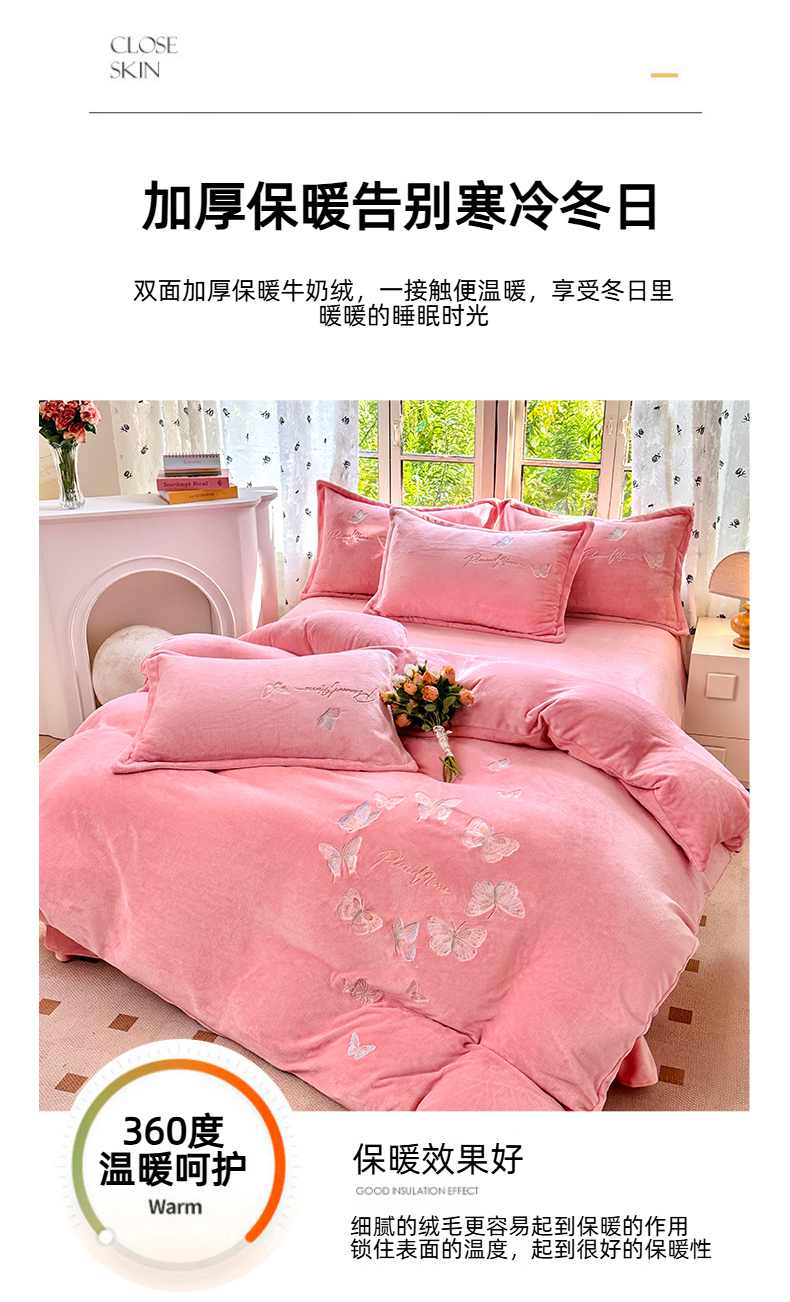 (总)【苏东来】2025高端加厚保暖纯色甜美公主赫本风法式工艺款雕花牛奶绒四件套清新少女婴儿法莱兔绒四件套,蝶恋花,繁花,花香,玫瑰花,一枝花,华尔兹粉,华尔兹卡其,华尔兹水绿,华尔兹天蓝,山茶花,蝴蝶花,梦蝶,如意结,飞舞少女,满天星粉,满天星卡其,满天星水绿