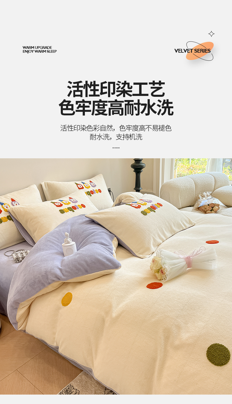 (总)懒猫家纺 2025新款亲肤舒适牛奶绒四件套-可可小姐系列,可可小姐-瓷白,可可小姐-水粉