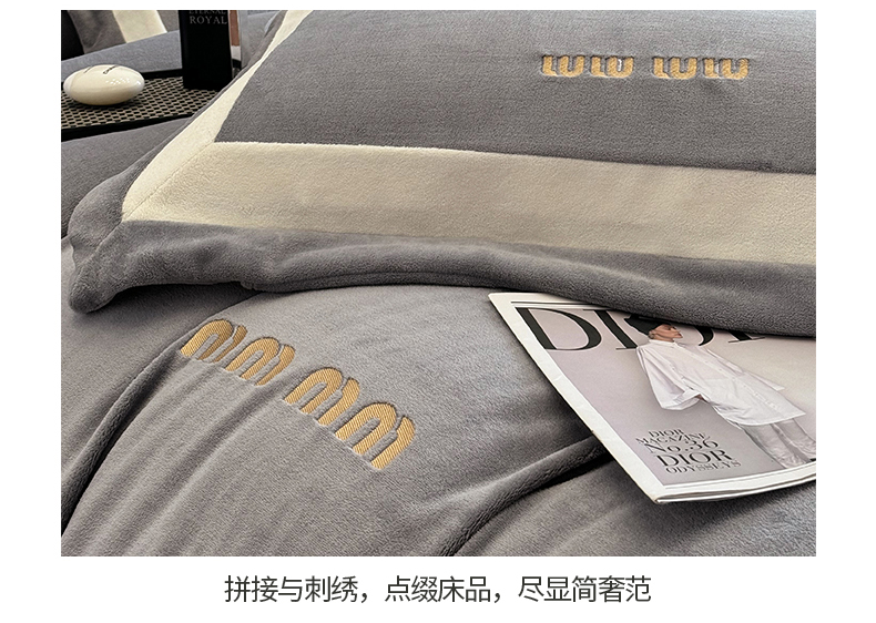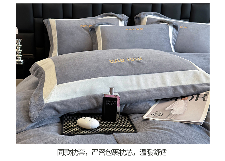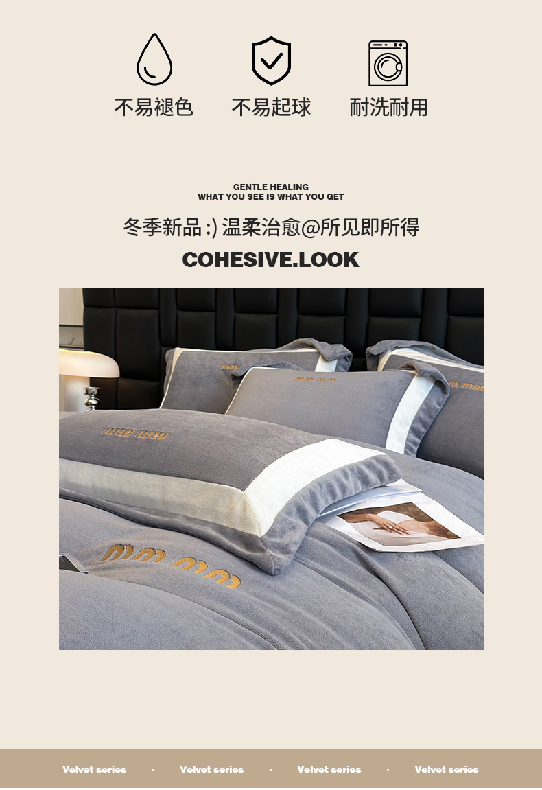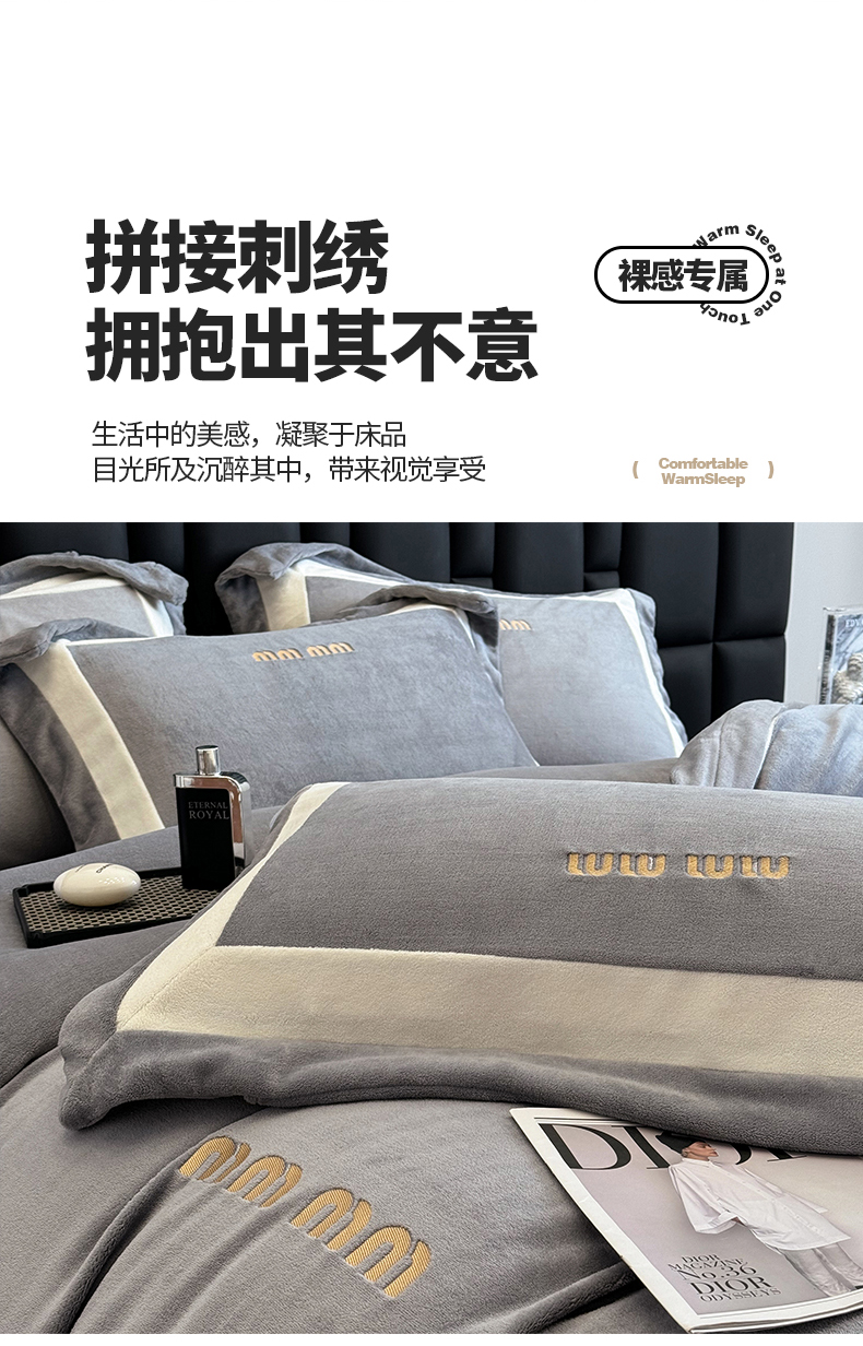 商品名称:懒猫家纺 2025新款轻奢拼接牛奶绒四件套-缪斯 缪斯-霜林灰