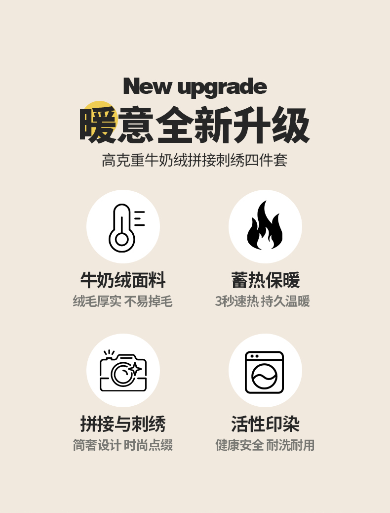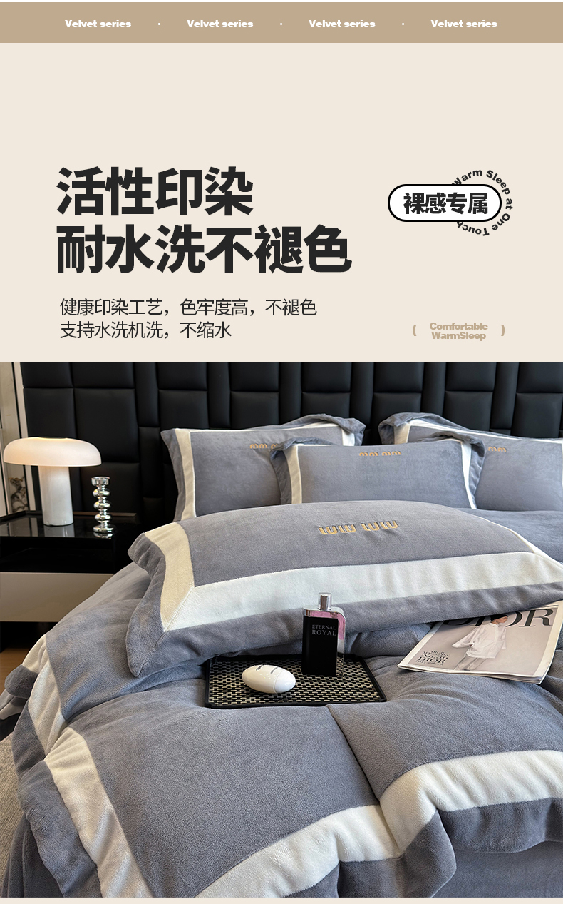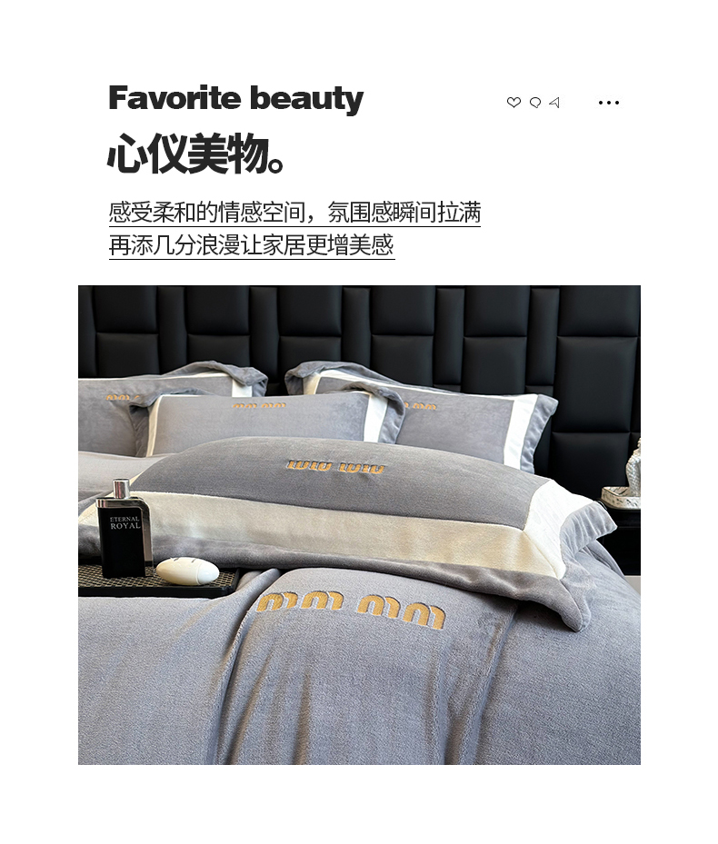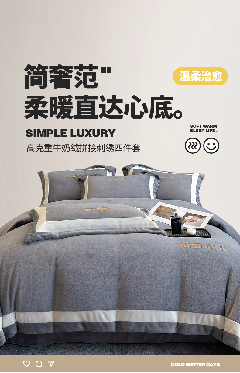 商品名称:懒猫家纺 2025新款轻奢拼接牛奶绒四件套-缪斯 缪斯-霜林灰