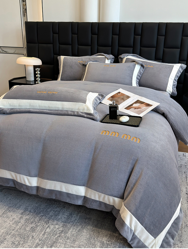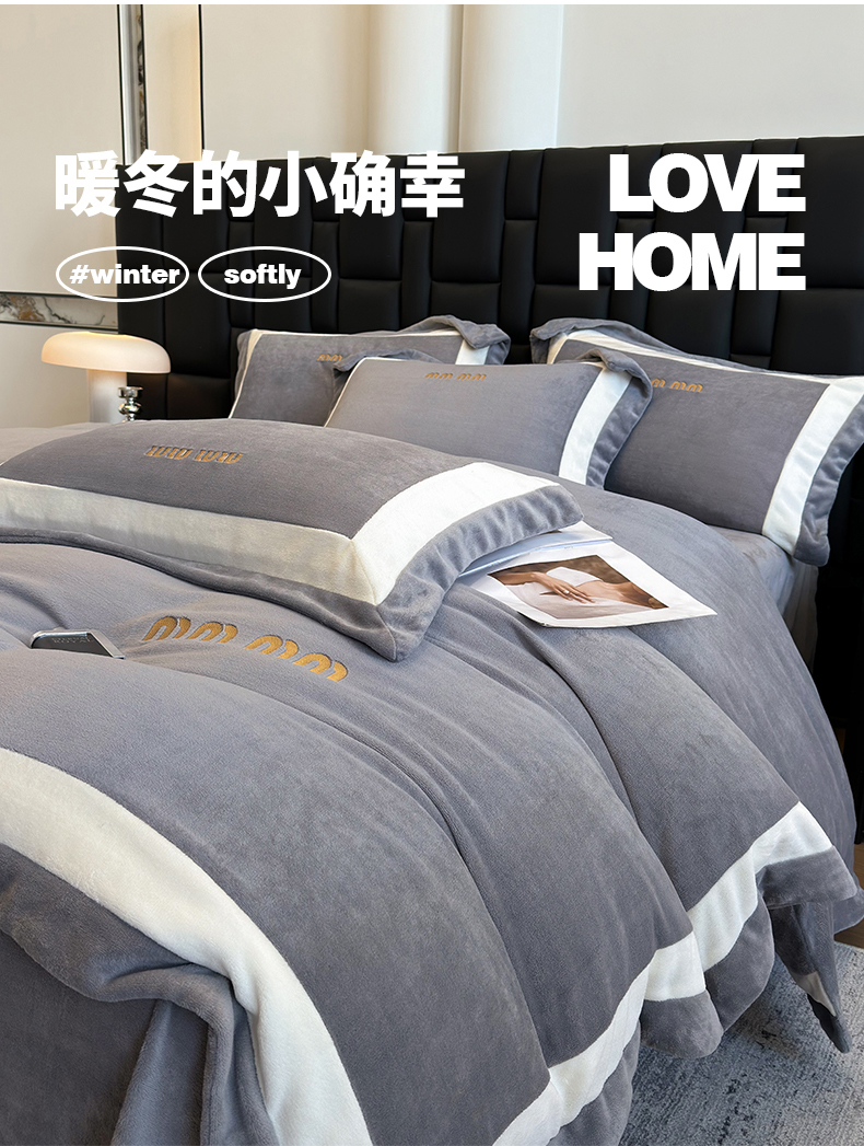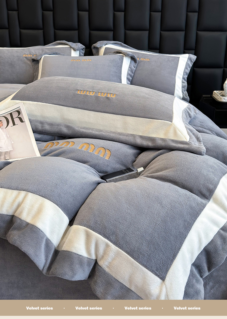 懒猫家纺 2025新款轻奢拼接牛奶绒四件套-缪斯 缪斯-霜林灰