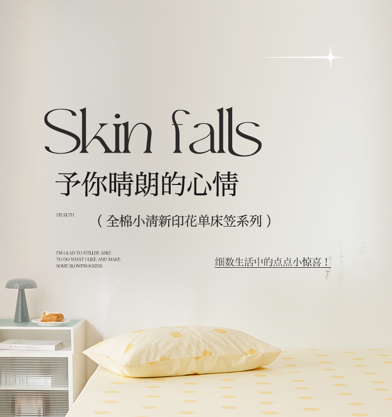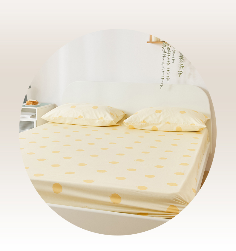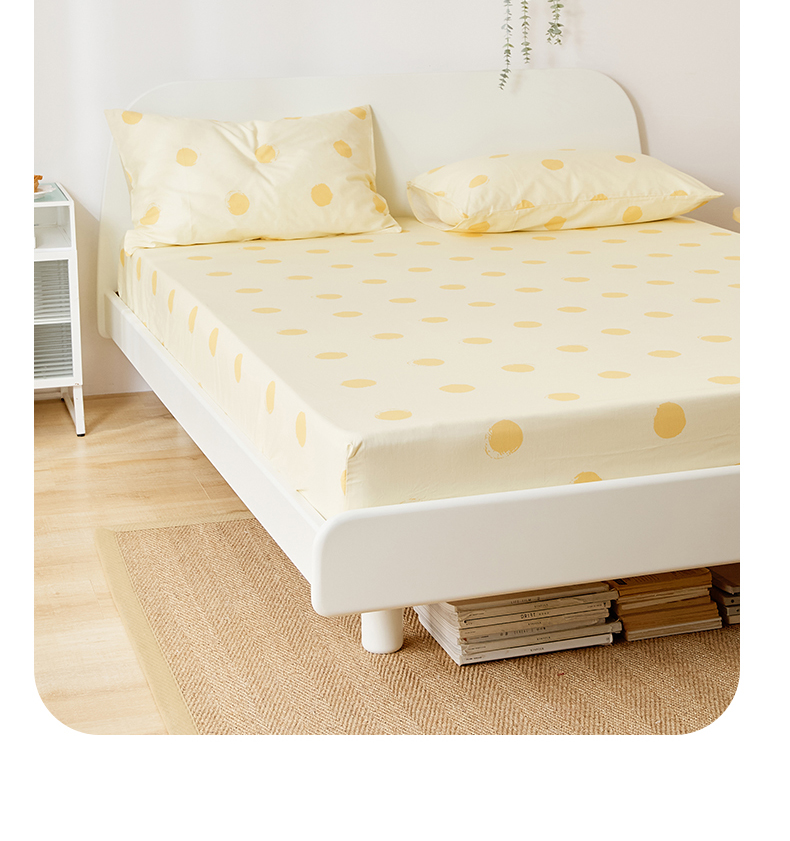 EH家居 2025新款全棉小清新印花单床笠-织光系列 黄色大波点