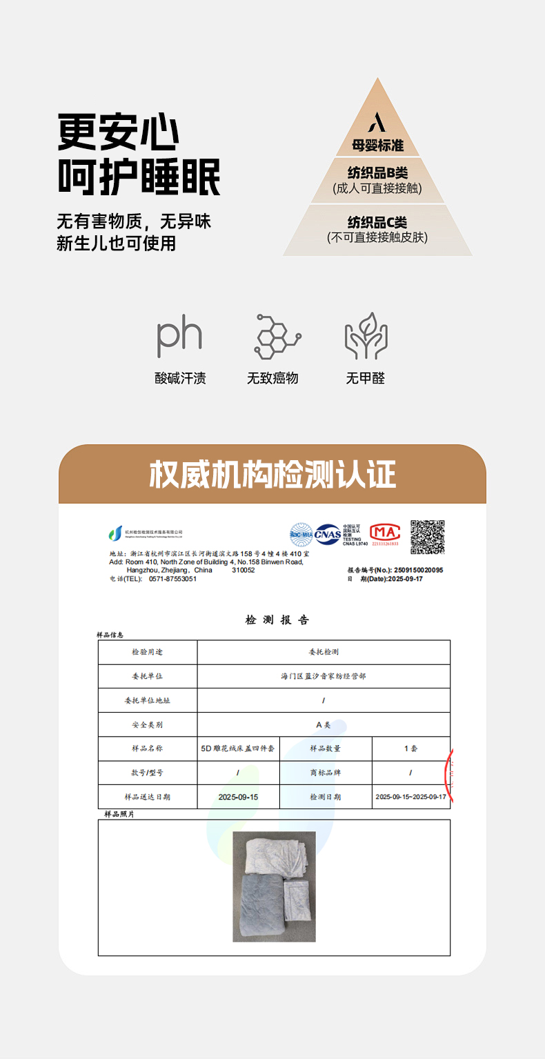 4、通州区市场监管局川姜分局友情提醒:近期针对抗静电,无静电,抗菌防螨,及有关舒适度,百分比的举报高发。为不影响商品正常销售,请各商家高度重视,自检自查及时整改,谢谢配合!