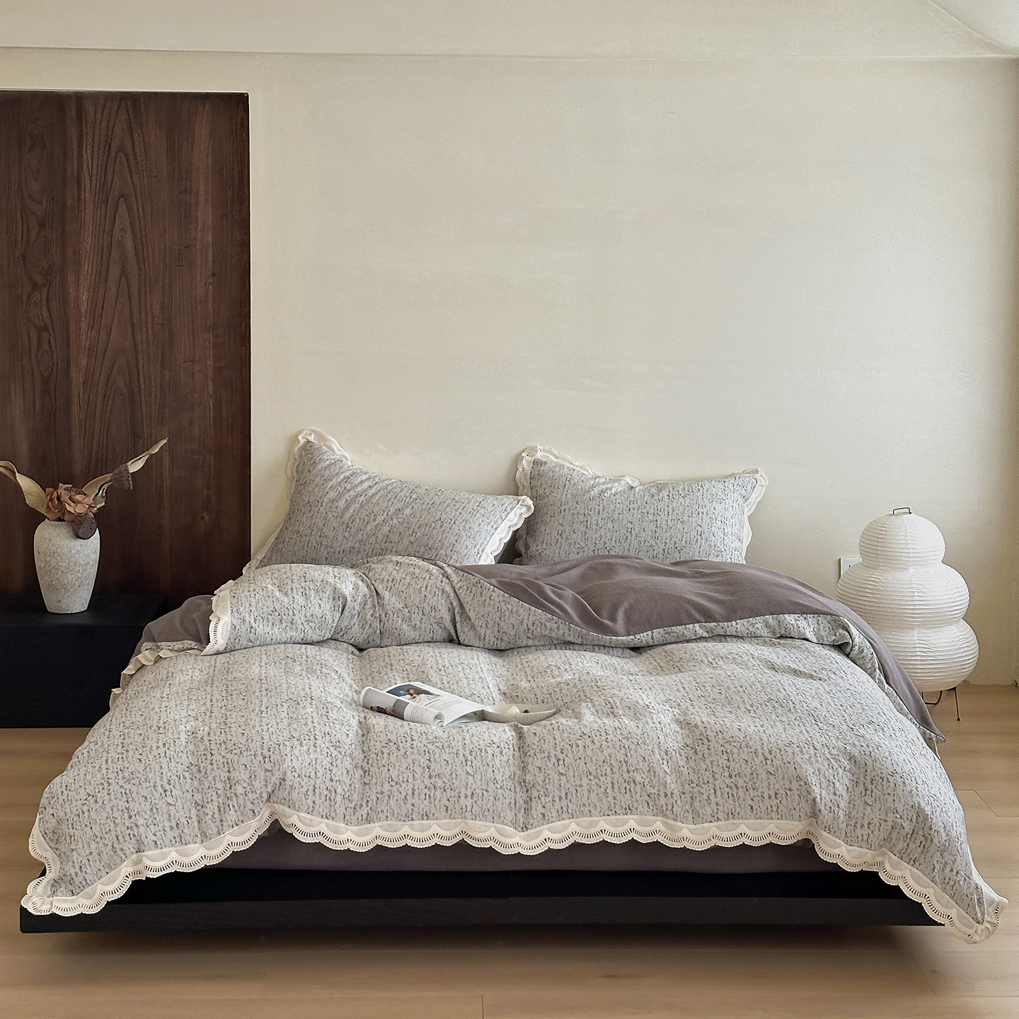 (总)月夏 2025新款全棉纯棉棉麻单被套被套单件-缤纷花语,缤纷花语-灰色,缤纷花语-咖色,缤纷花语-米白色