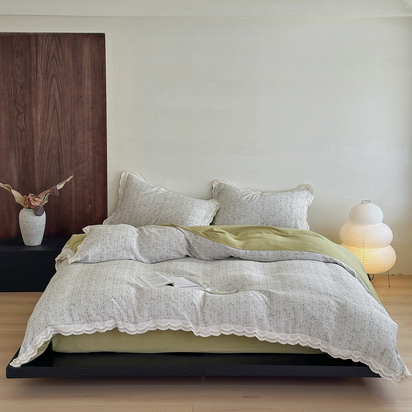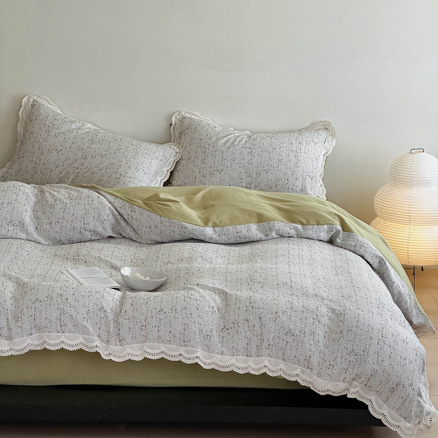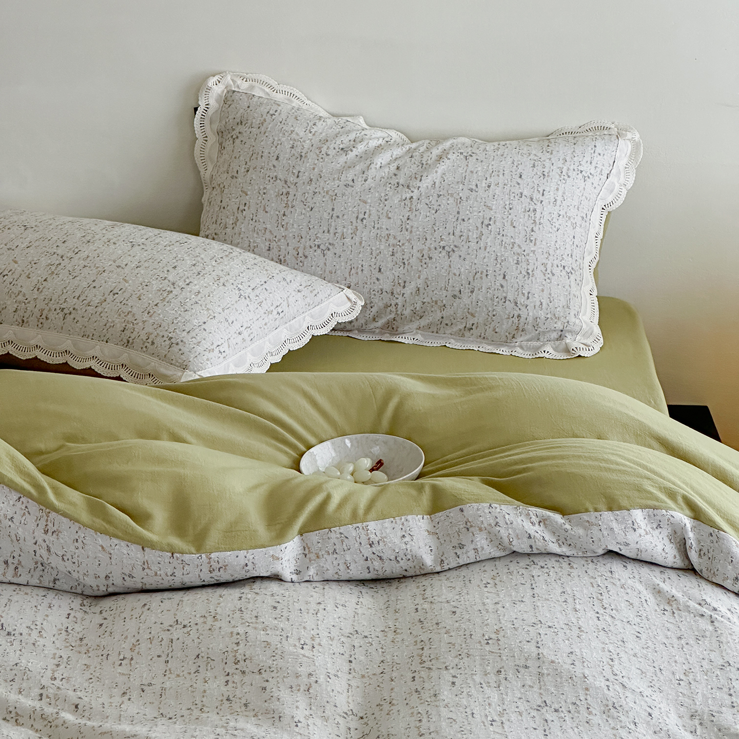 (总)月夏 2025新款手工贴布棉麻四件套-荷塘月色,荷塘月色