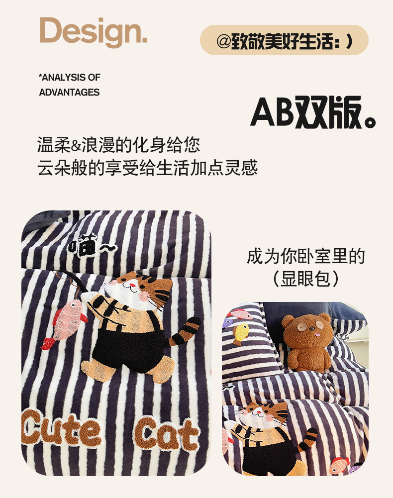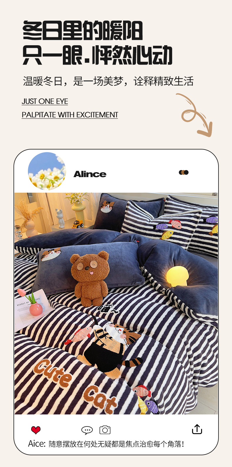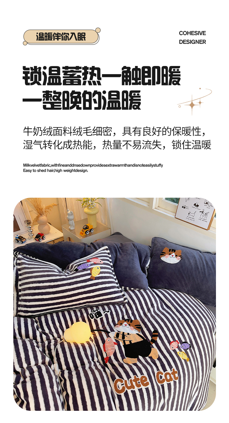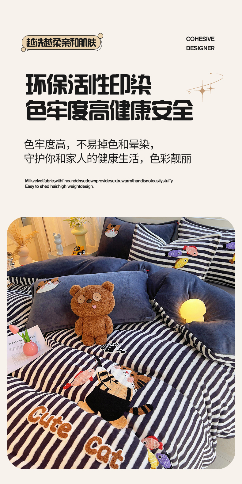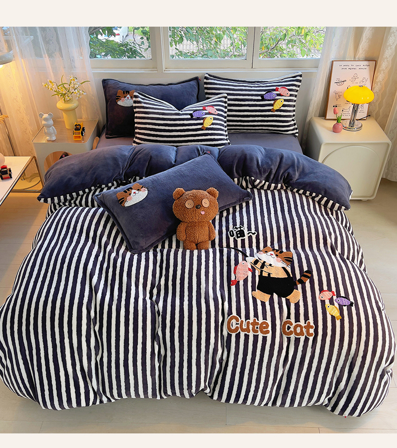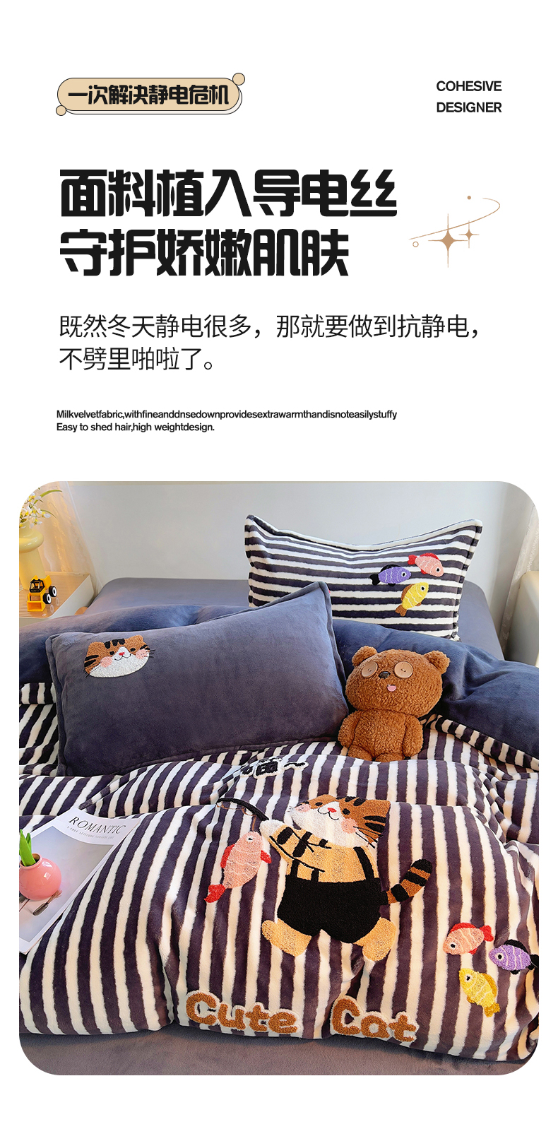 炫拼家纺 2025新款高克重牛奶绒毛巾绣卡通四件套-可孚系列 可孚-钓鱼的猫