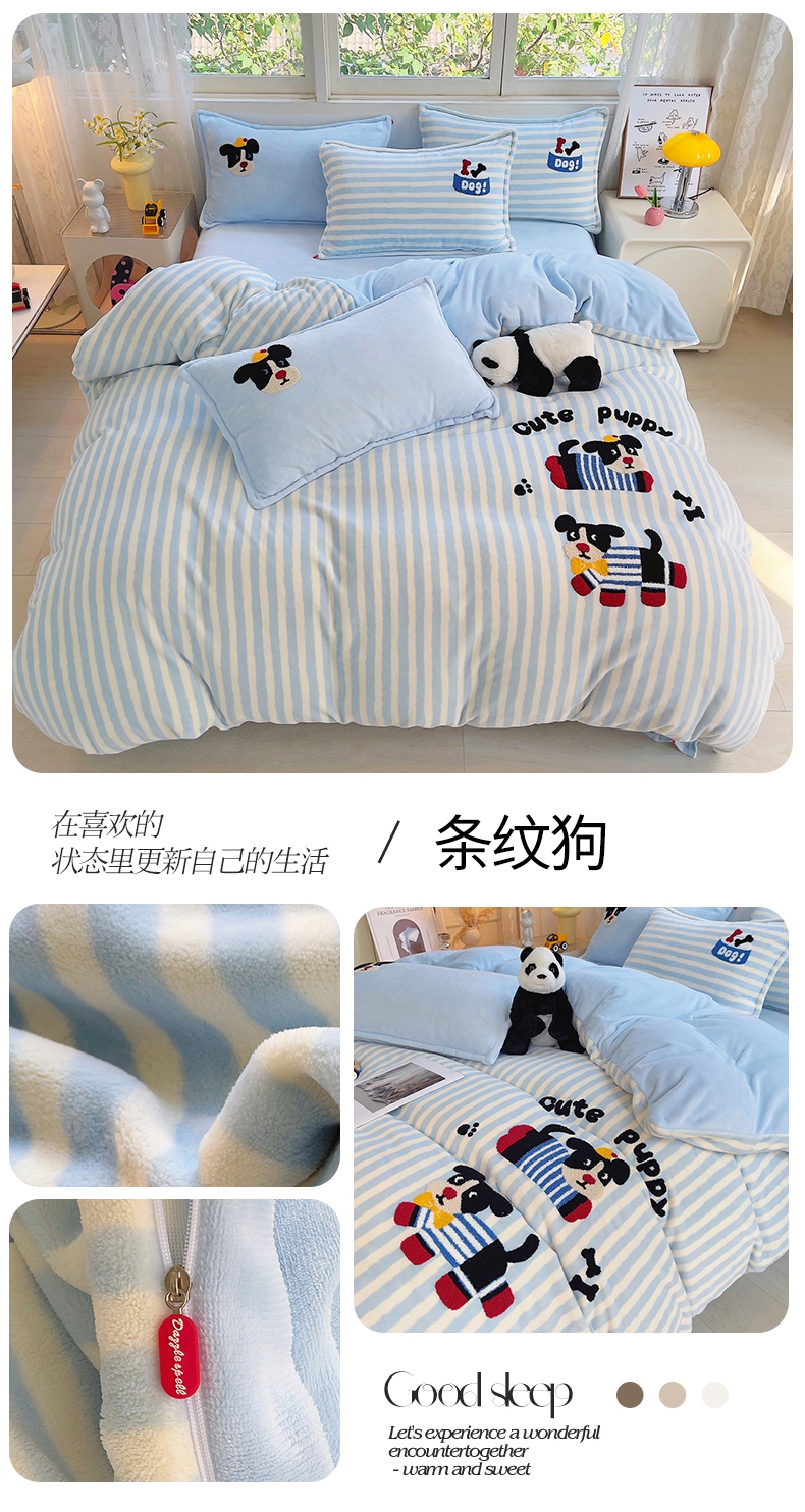 (总)炫拼家纺 2025新款高克重牛奶绒满版毛巾绣卡通加厚四件套-糯米系列,糯米-绅士熊,糯米-福仔,糯米-狗狗的一天,糯米-欢喜的狗,糯米-慢时光,糯米-猫次元,糯米-水果派对