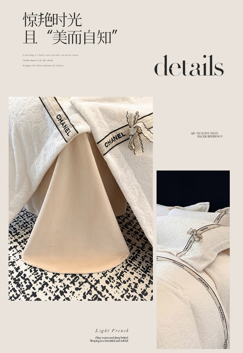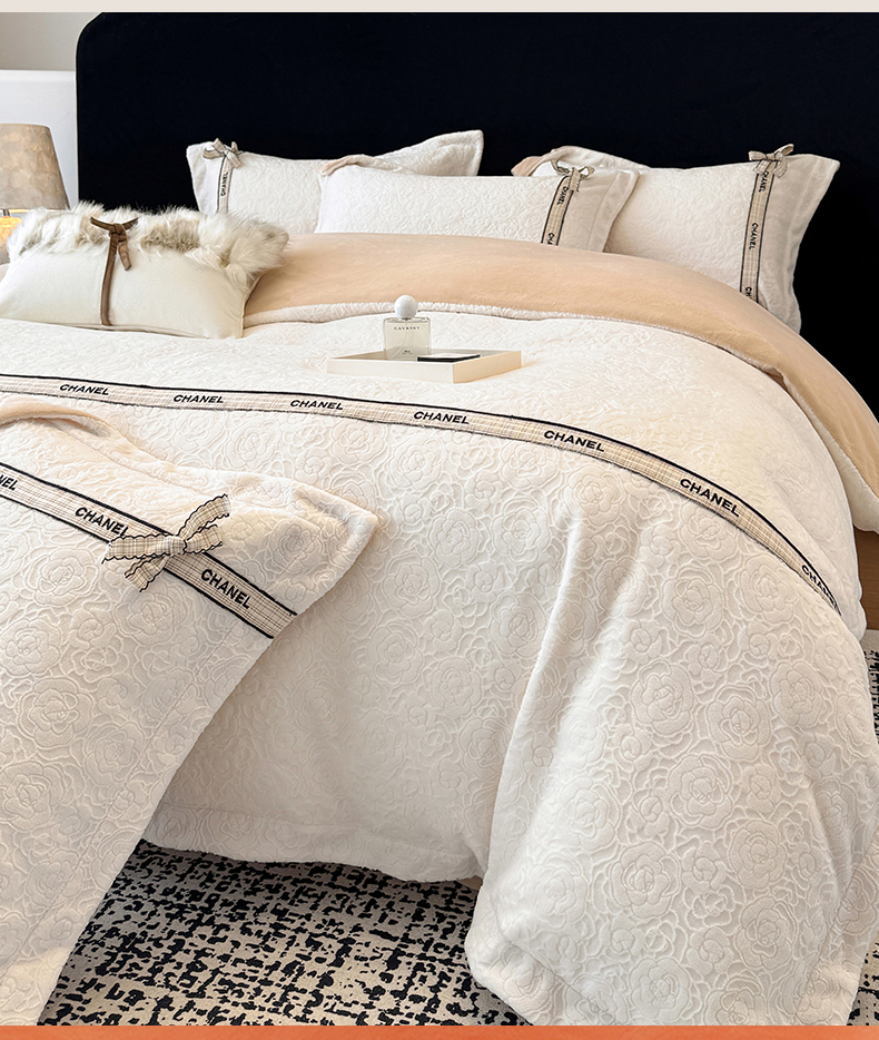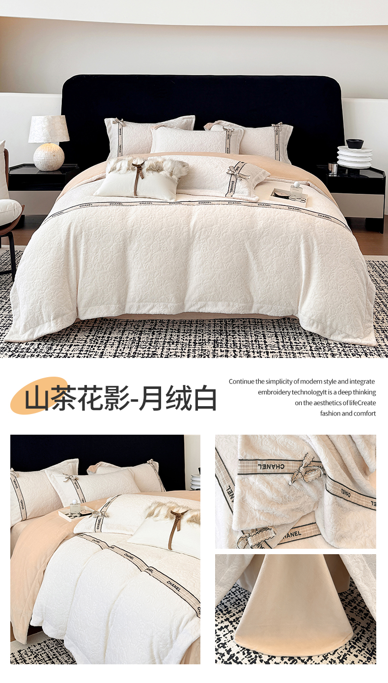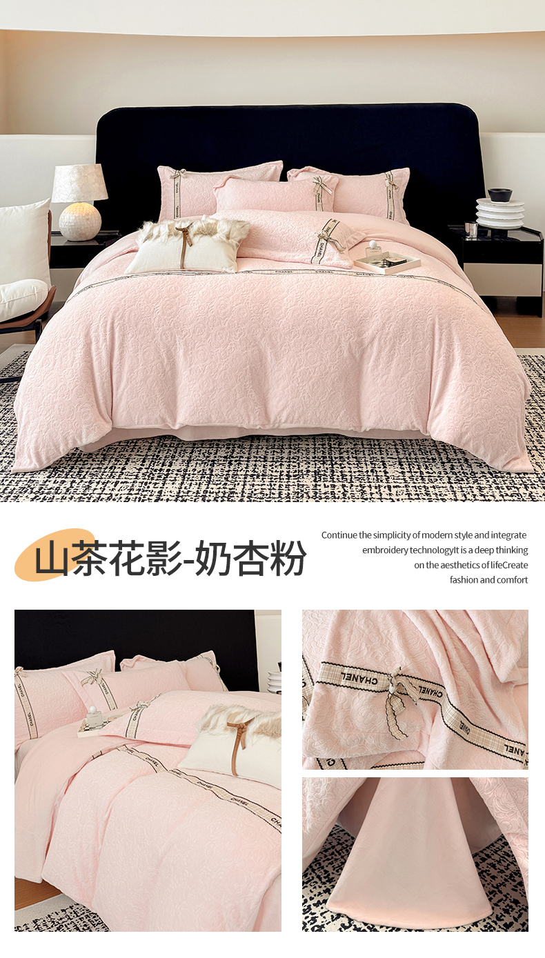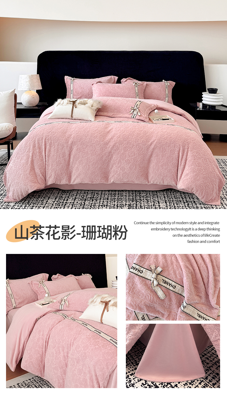 当前位置: 91家纺网 > 商品网购 > 床品套件 > 四件套 > 牛奶绒四件套 > (总)金喜 2025新款230克全消光雕花绒四件套牛奶绒四件套-山茶花影
