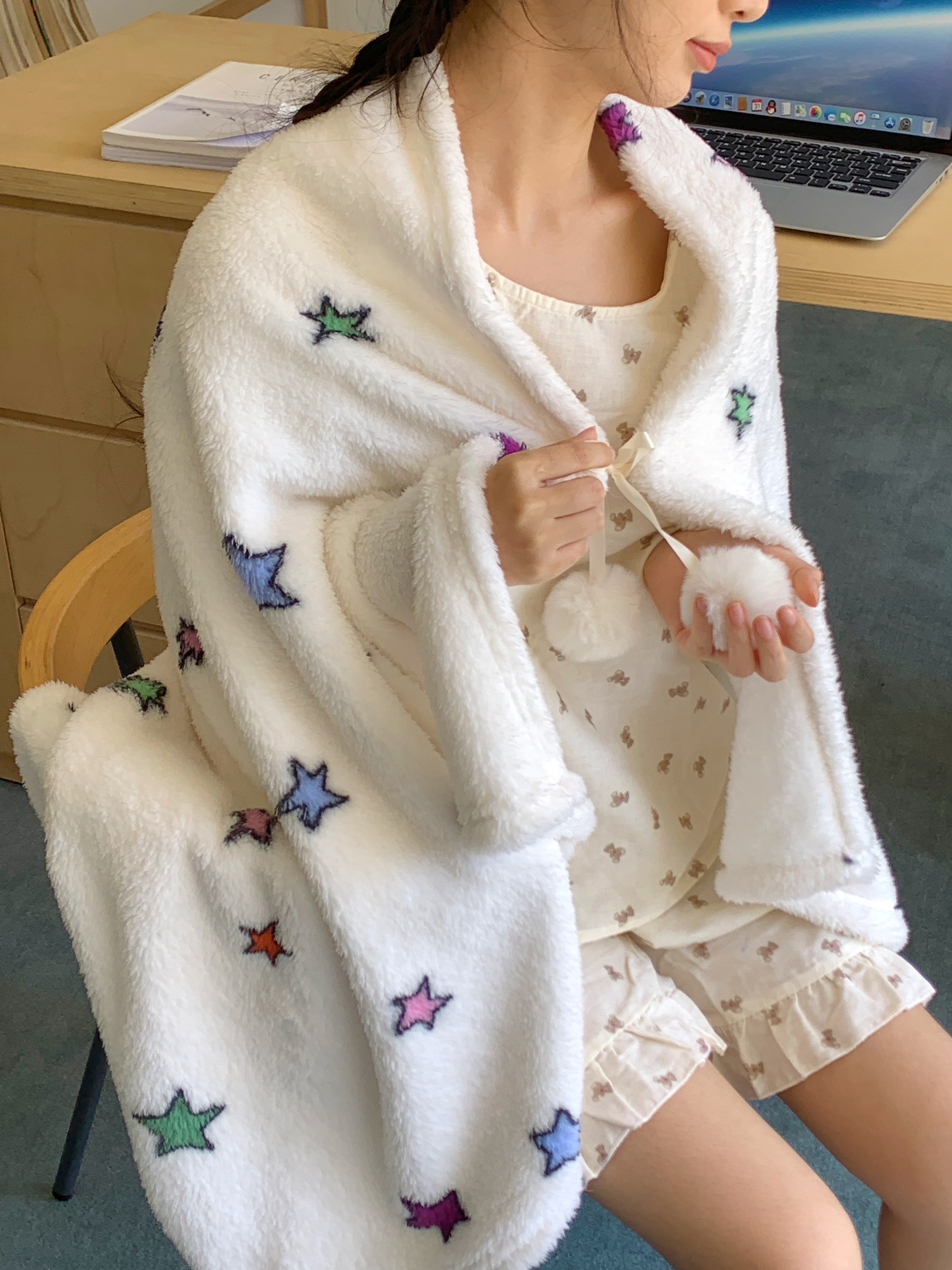 商品名称:桃喜 2025新款摇粒绒披肩毯毛毯毯子 彩色星星