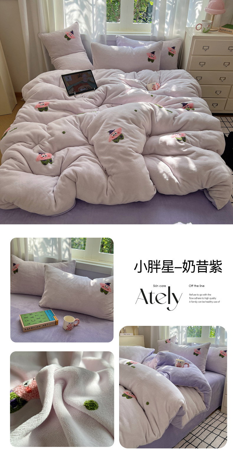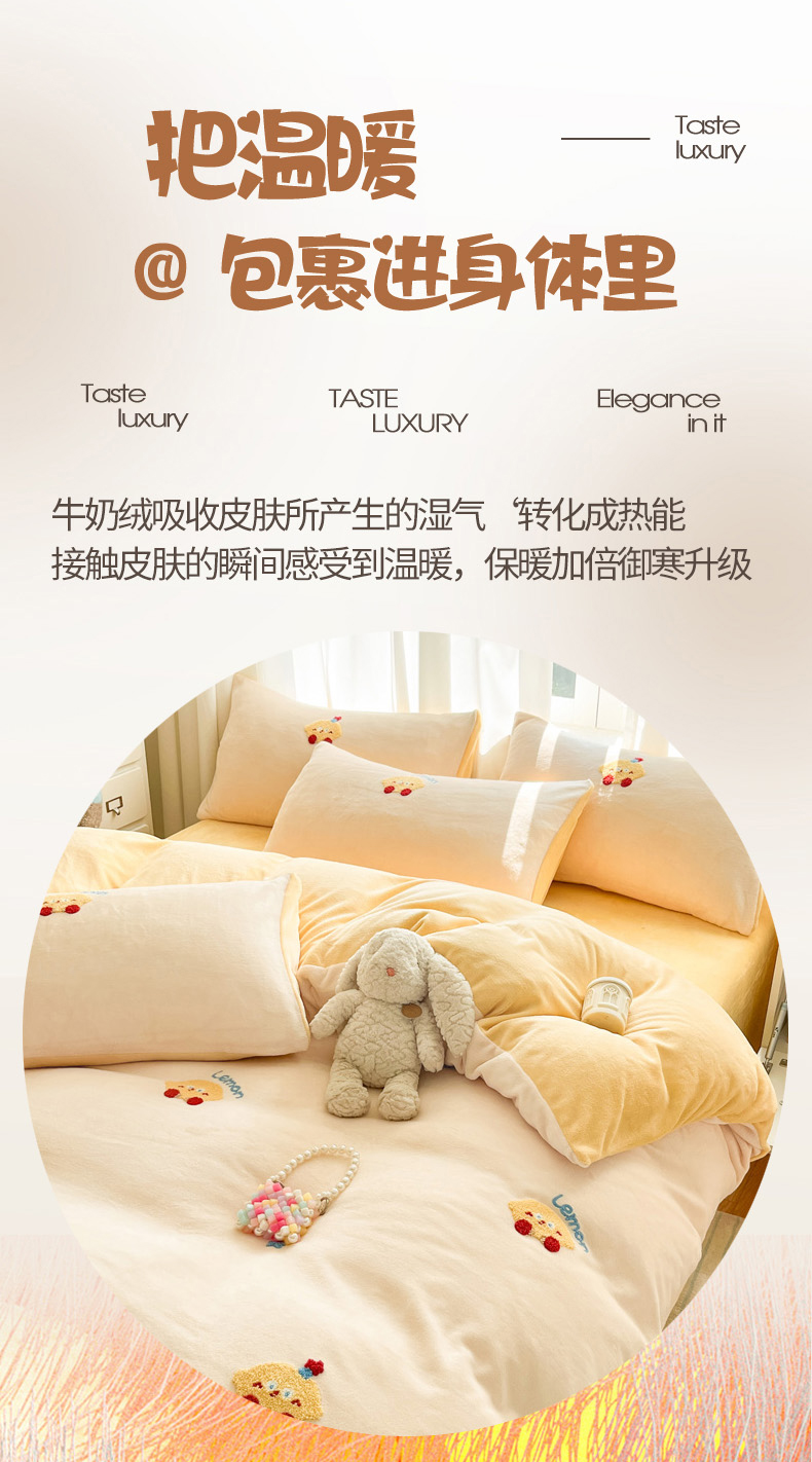 当前位置: 91家纺网 > 商品网购 > 床品套件 > 四件套 > 牛奶绒四件套 > 丽涵家纺 2025秋冬新品210克牛奶绒毛巾绣四件套卡通绣花学生床笠三件套 榴莲忘返