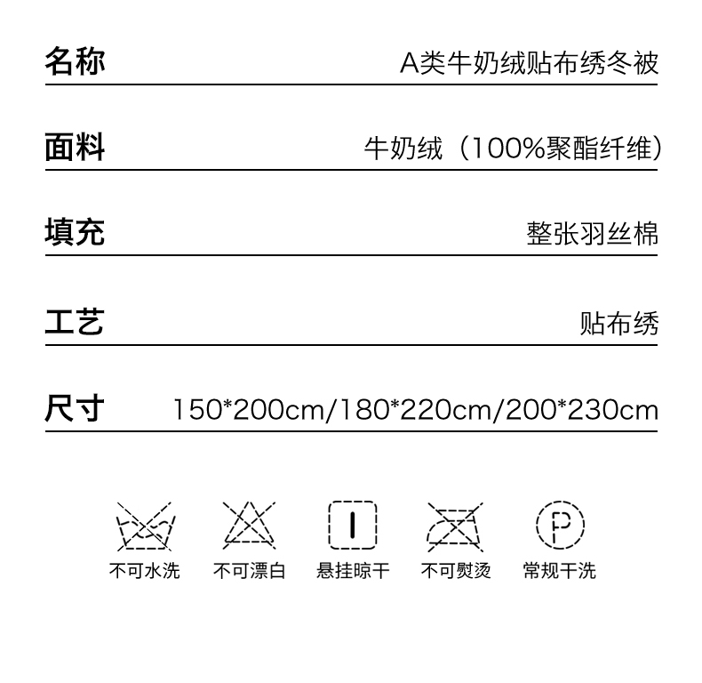 商品名称:(总)星座家纺 2025新款A类牛奶绒贴布绣冬被被子被芯