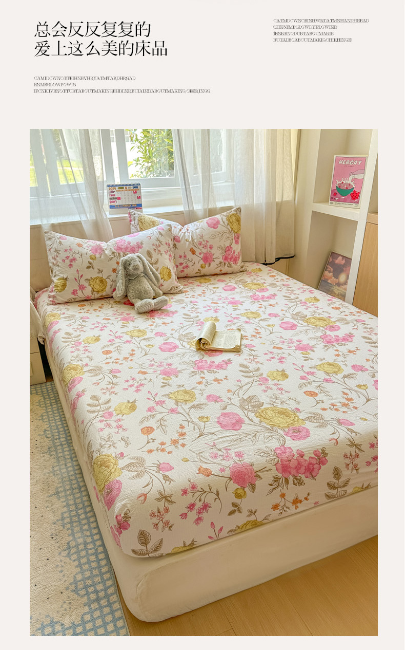 (总)花伞家居 2025新款A类高克重云感木棉双层纱单床笠(提供买家秀),松烟灰,粉豆沙,风信紫,涧石蓝,卡其,茉莉黄,玉色
