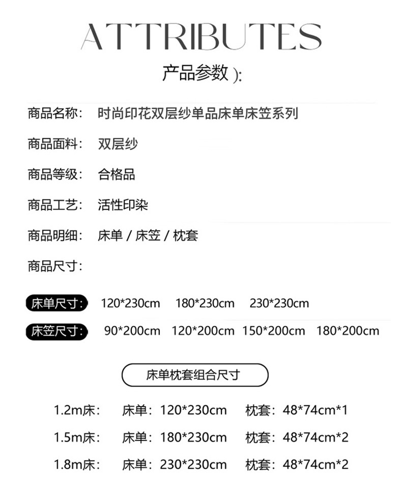 120*230cm床单+枕套一只