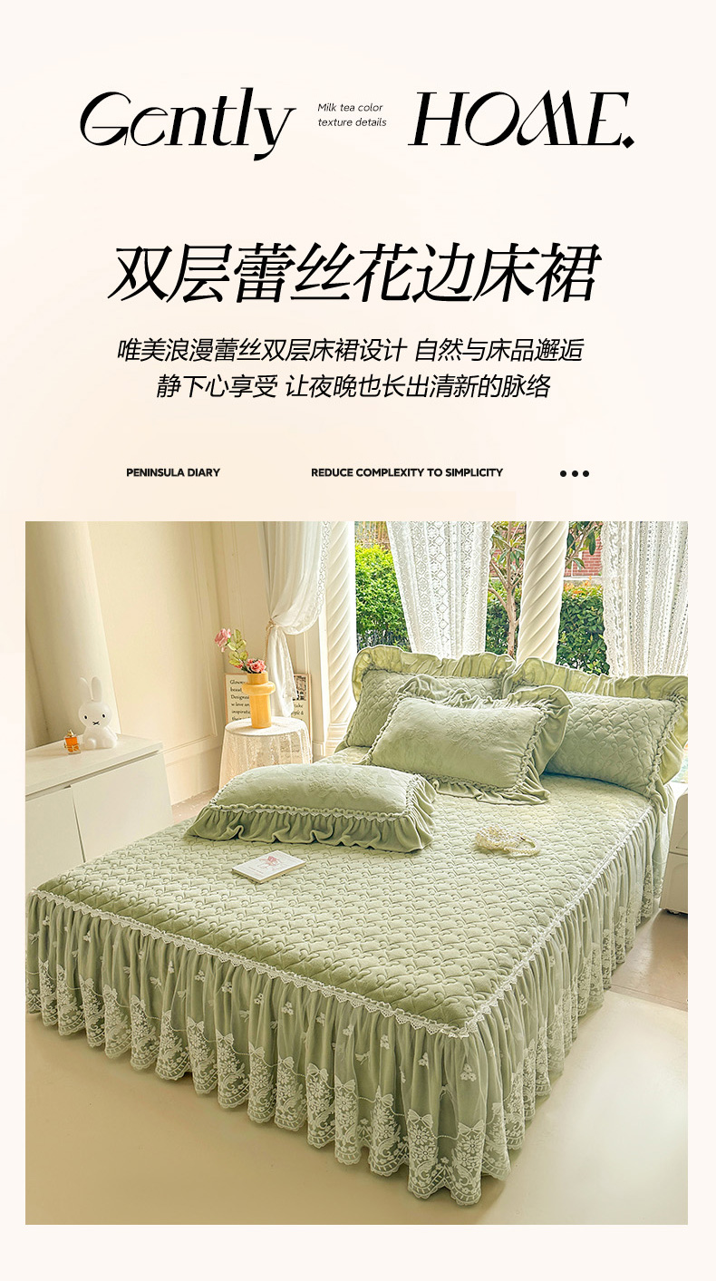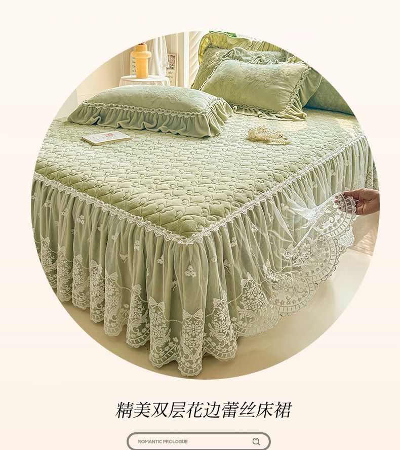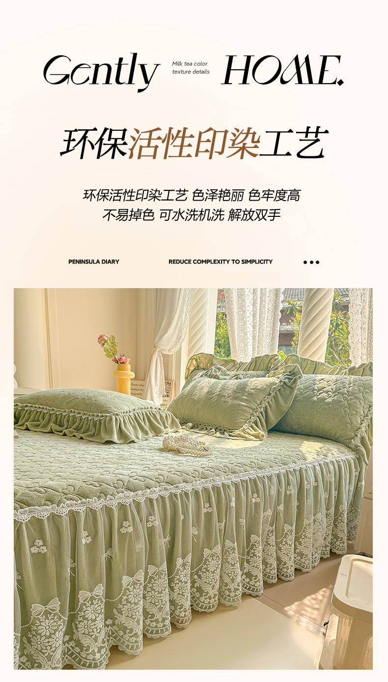 商品名称:罗艺轩 【控价】2025新款立体雕花牛奶绒加厚保暖床裙款三件套-安琪儿 安琪儿-绿