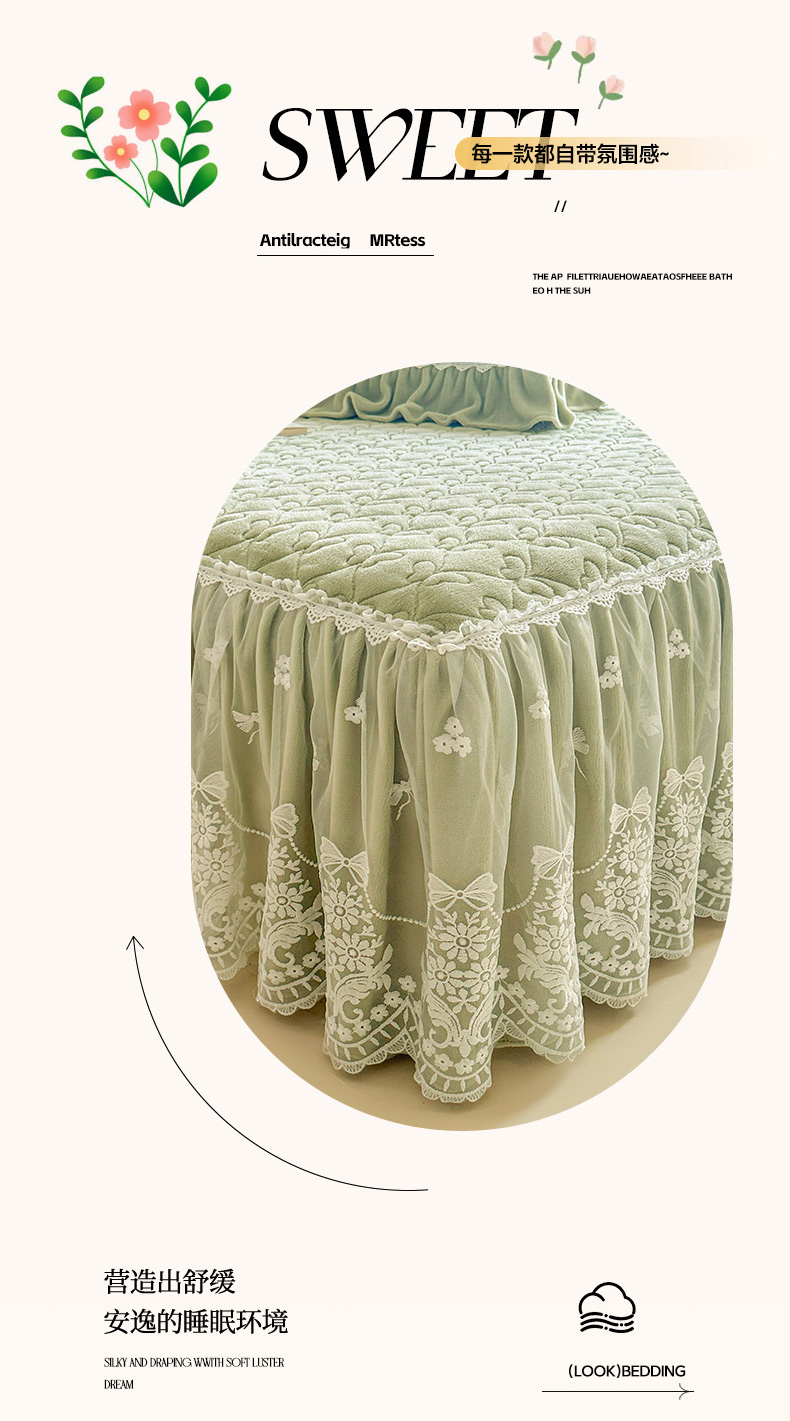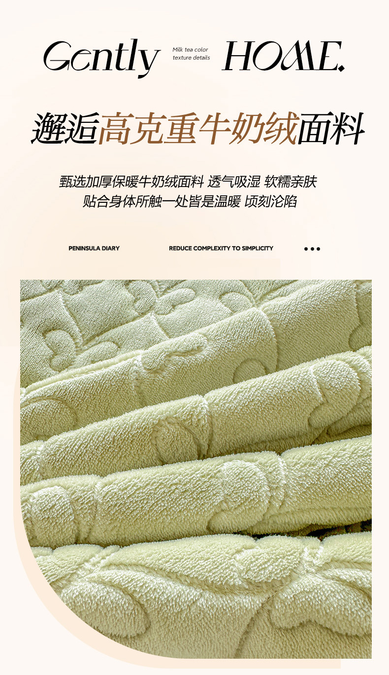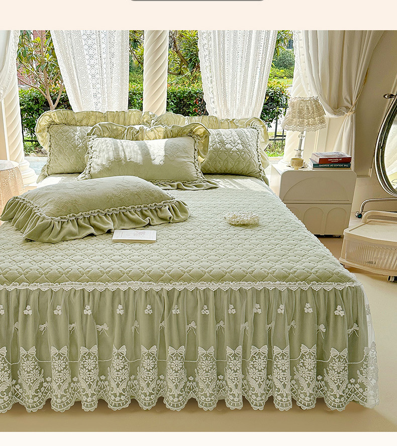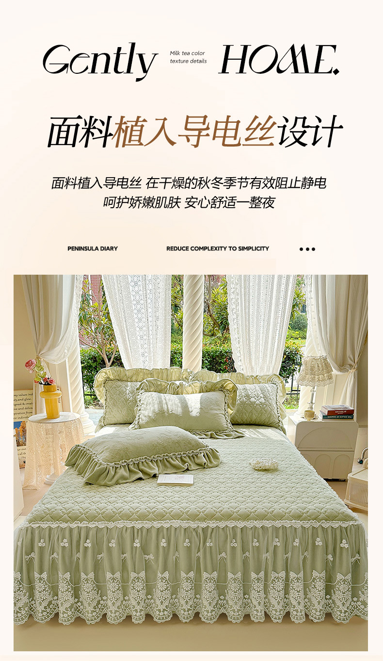 商品名称:罗艺轩 【控价】2025新款立体雕花牛奶绒加厚保暖床裙款三件套-安琪儿 安琪儿-绿
