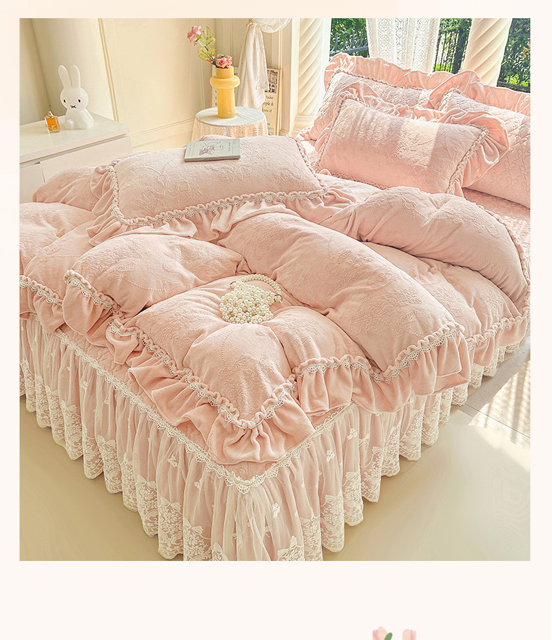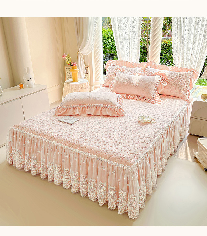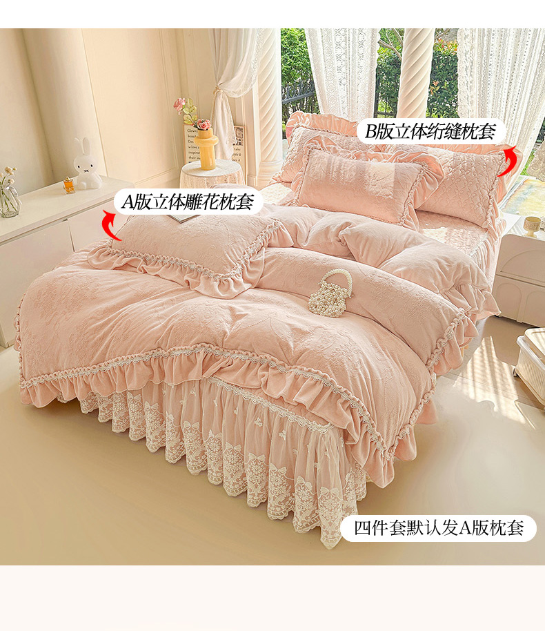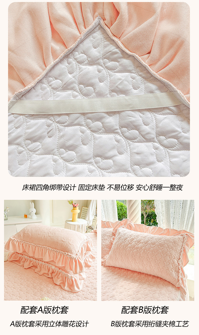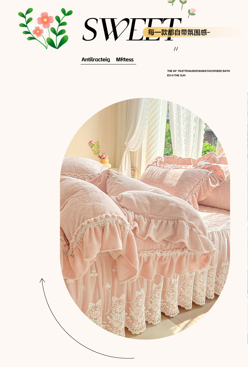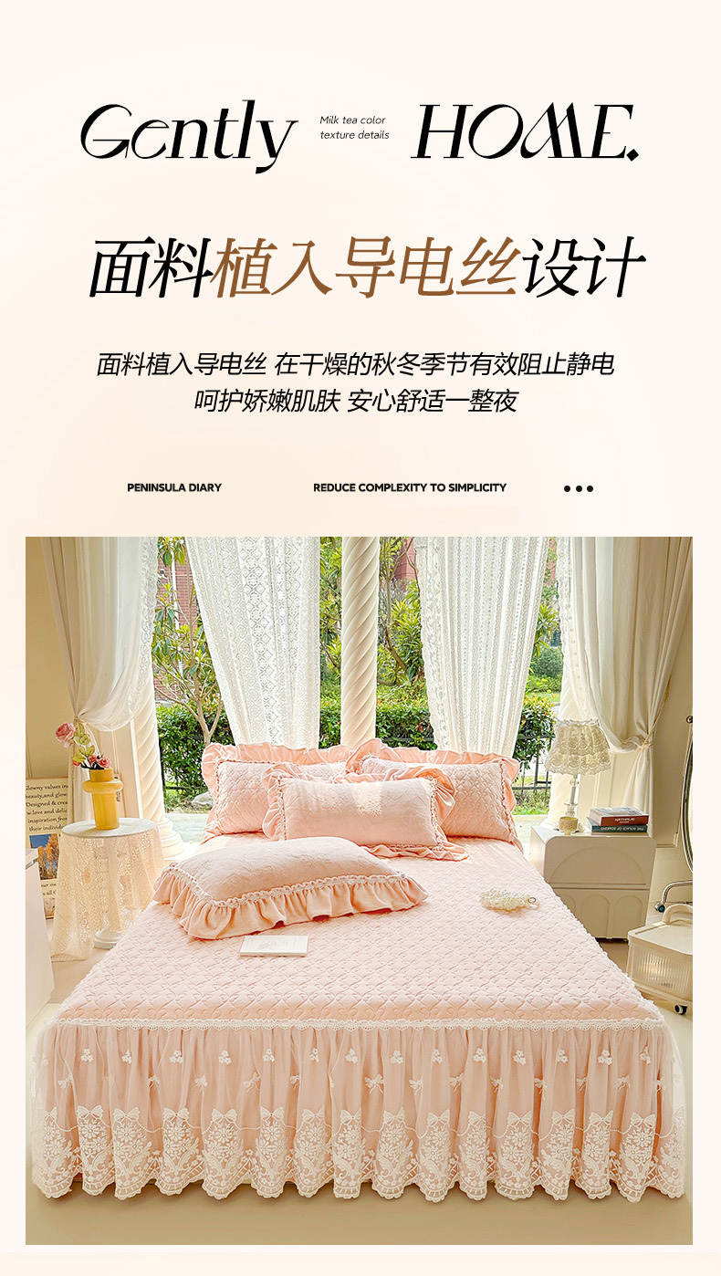 当前位置: 91家纺网 > 商品网购 > 床品套件 > 四件套 > 其它四件套 > 罗艺轩 【控价】2025新款立体雕花牛奶绒加厚保暖床裙款四件套-安琪儿 安琪儿-玉