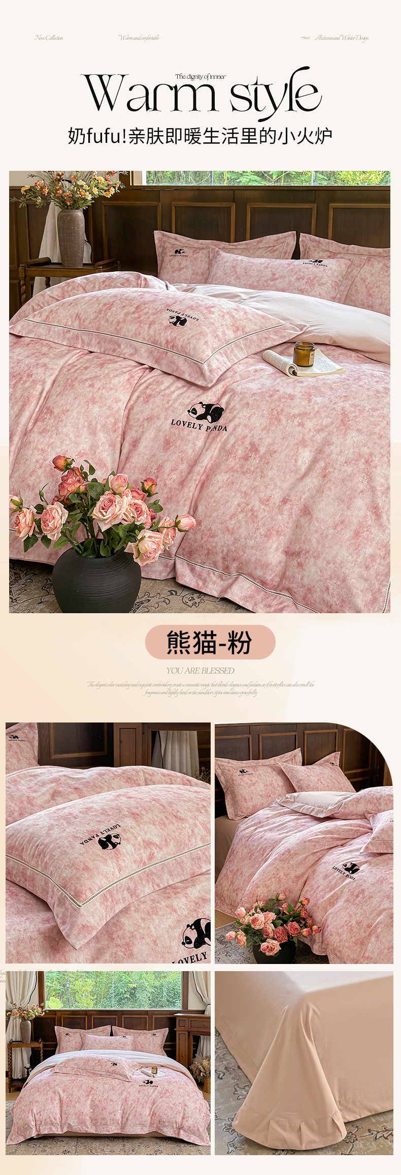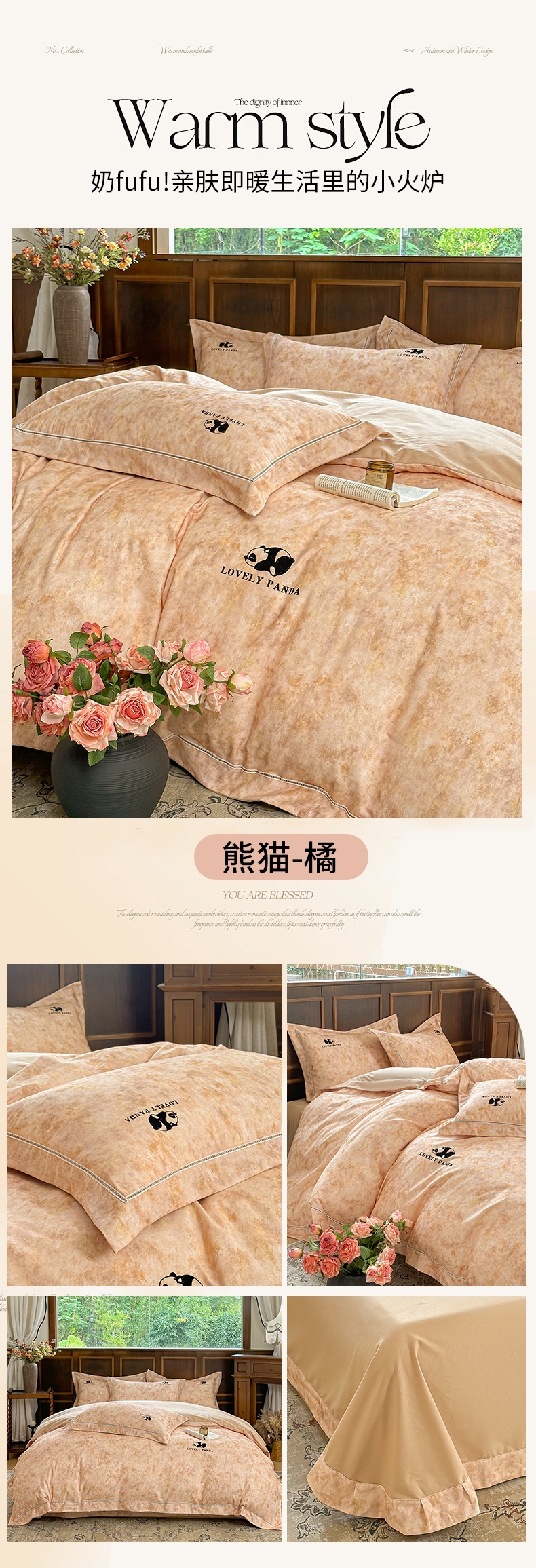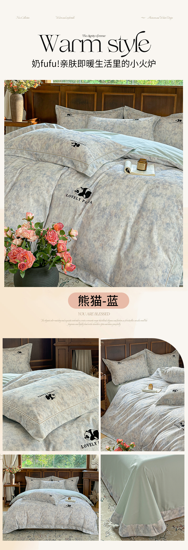 舒慕家纺 2025新款长绒棉磨毛全棉磨毛四件套 熊猫-驼