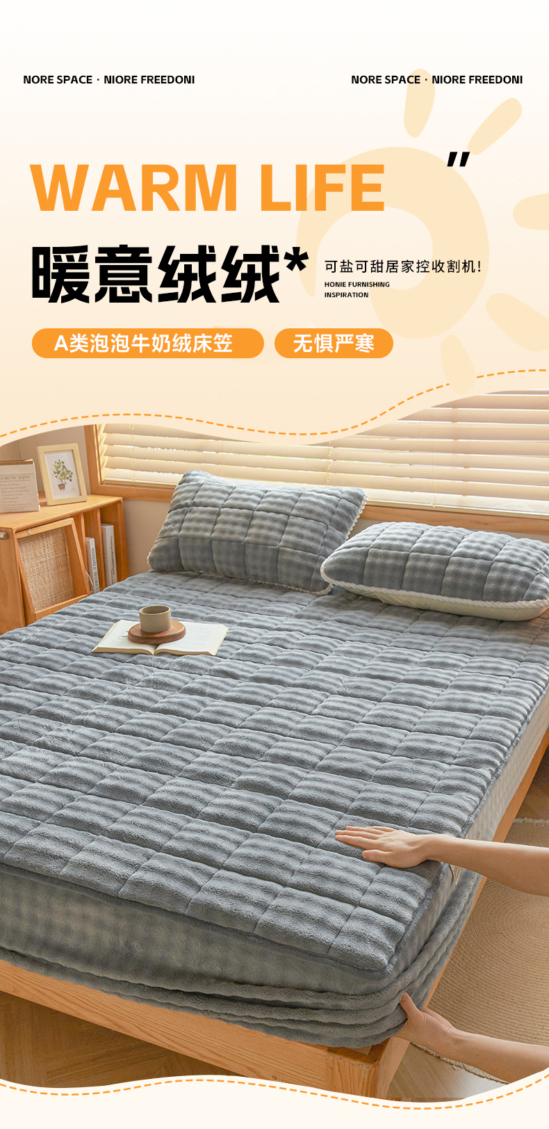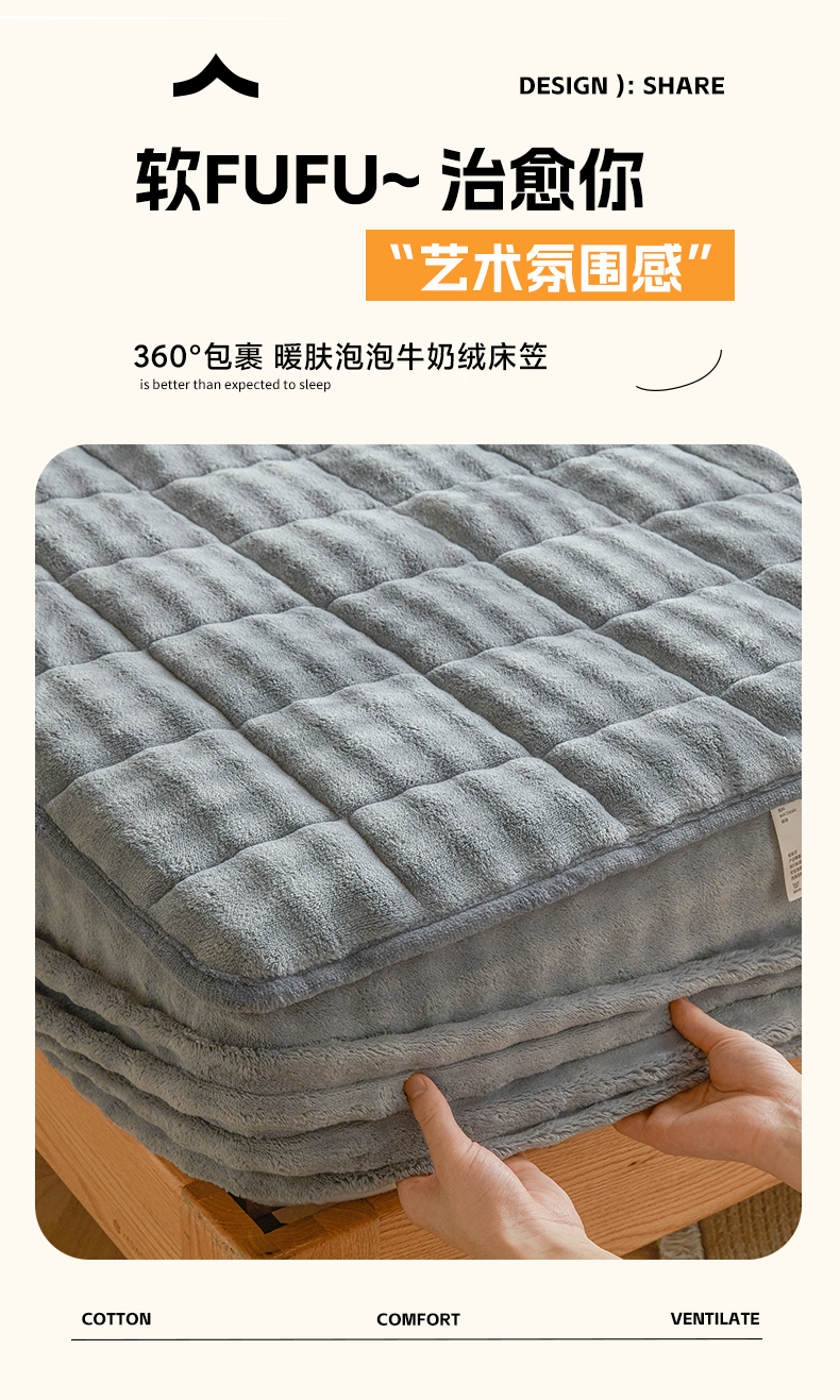 • 91家纺网 家纺一手货源 找家纺 (总)鑫顺欣 2025新款泡泡牛奶绒床笠套件三件套,玫瑰粉,奶卡色,雾晨蓝,星空灰,抹茶绿,奶白色