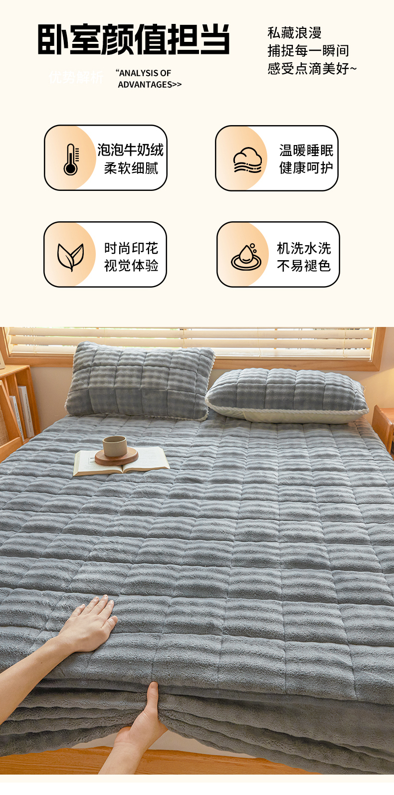 (总)鑫顺欣 2025新款泡泡牛奶绒床笠套件三件套,玫瑰粉,奶卡色,雾晨蓝,星空灰,抹茶绿,奶白色