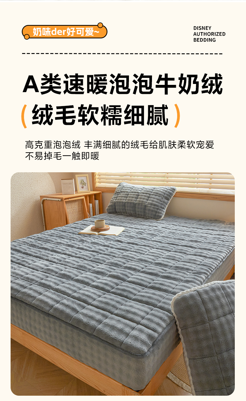 (总)鑫顺欣 2025新款泡泡牛奶绒床垫床褥,玫瑰粉,奶白色,奶卡色,浅蓝色,星空灰,抹茶绿,鸽子灰,景泰蓝,雾霾蓝