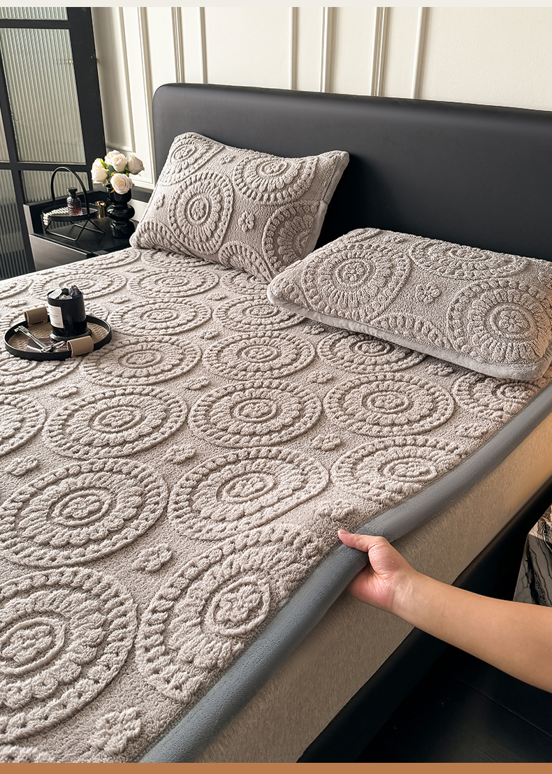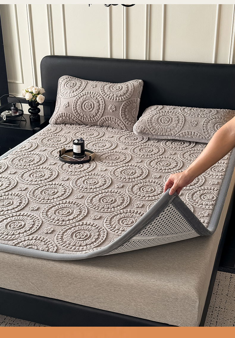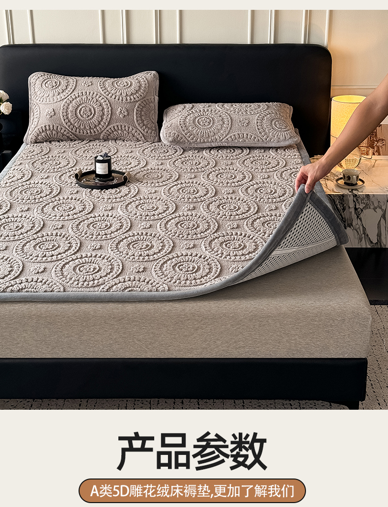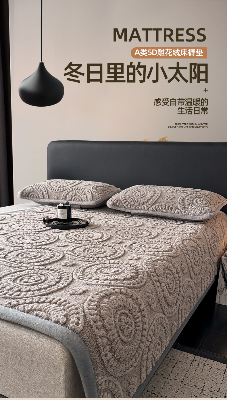 鑫姿席业 2025新款5D雕花绒床褥垫床垫 饼干花-灰