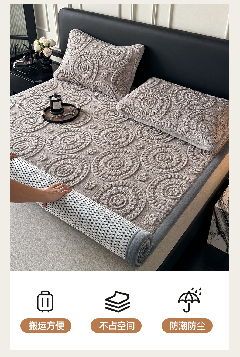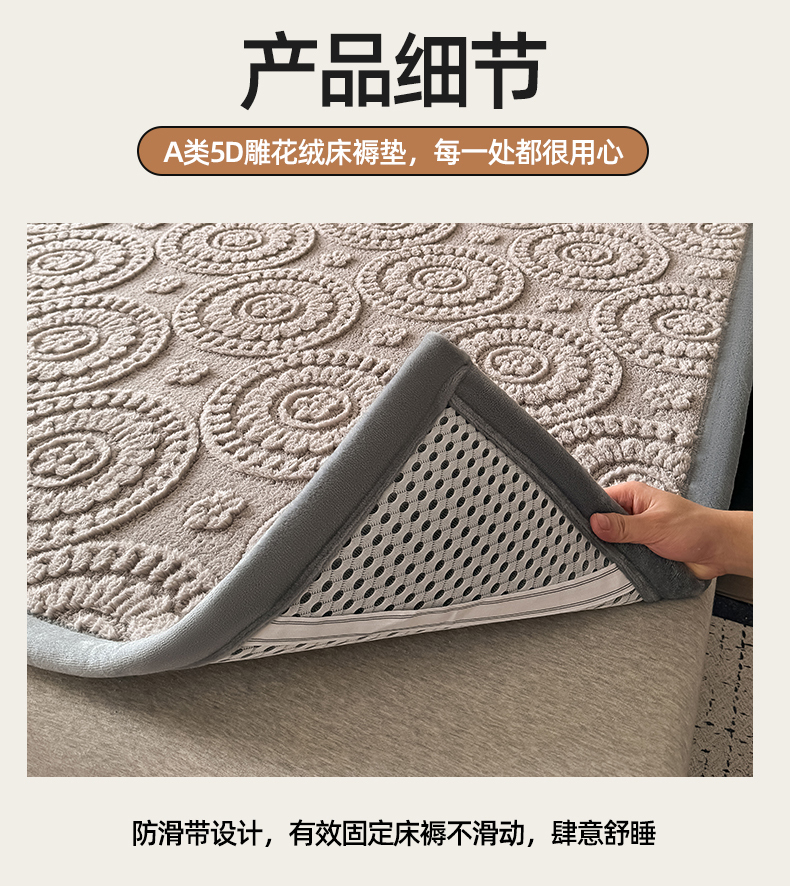商品名称:鑫姿席业 2025新款5D雕花绒床褥垫床垫 饼干花-灰