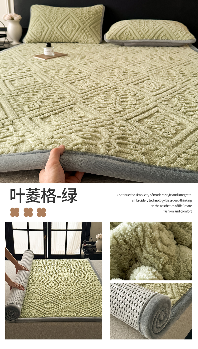 (总)鑫姿席业 2025新款5D雕花绒床褥垫床垫,饼干花-白,饼干花-粉,饼干花-灰,饼干花-卡其,饼干花-兰,饼干花-绿,叶菱格-白,叶菱格-咖,叶菱格-蓝,叶菱格-绿