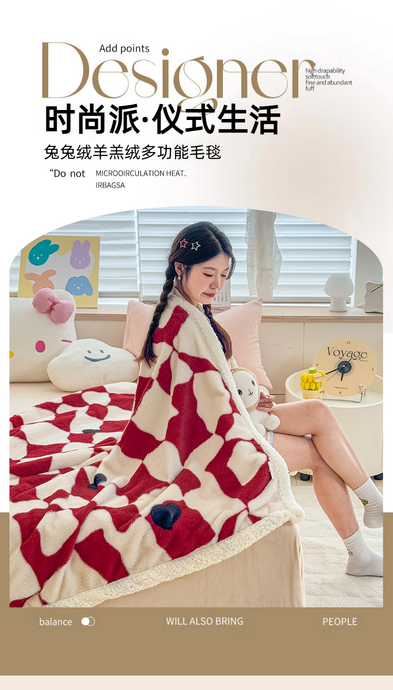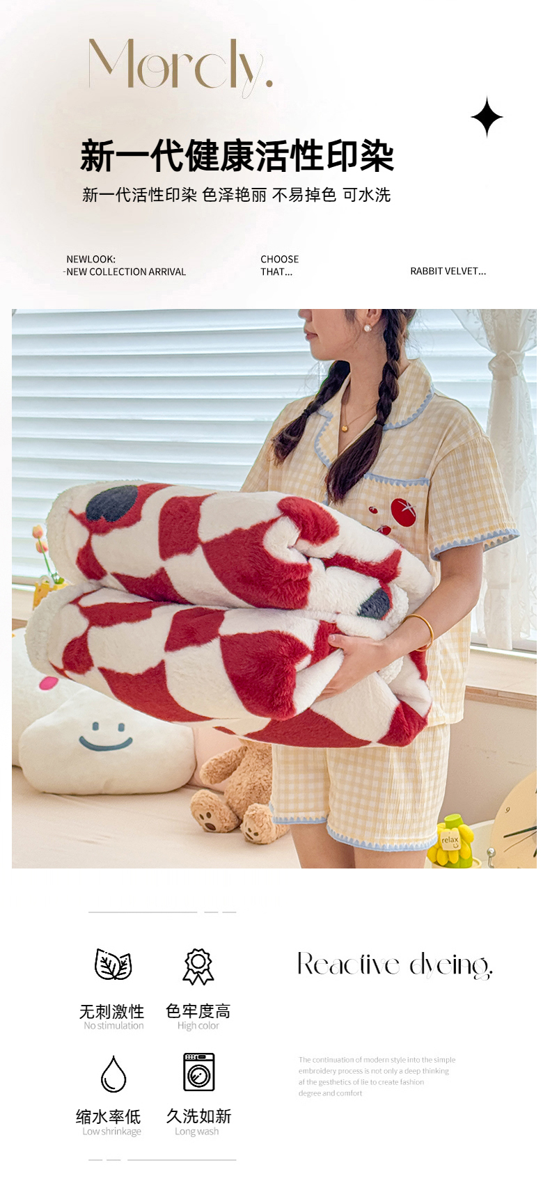 商品名称:KA家纺 2025新款兔毛绒毛毯 印花牛奶绒盖毯 多功能被套毯 兔绒毯 几何世界
